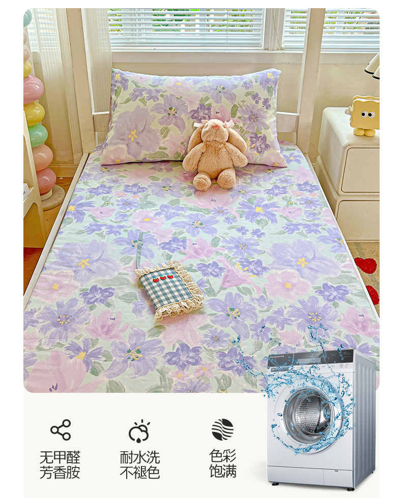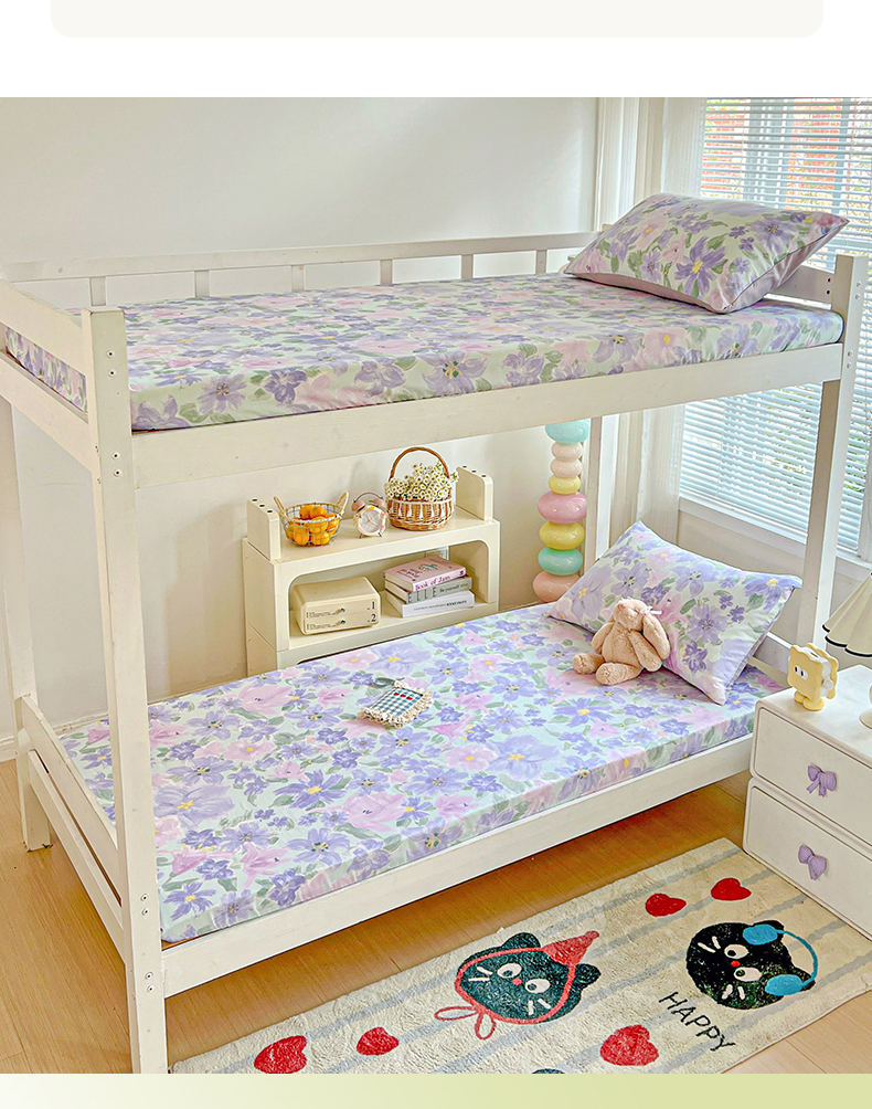 • 91家纺网 家纺一手货源 找家纺 名兮家居 2025新款全棉纯棉13372学生印花上下铺床笠单床笠单品床笠单件床笠 初秋紫