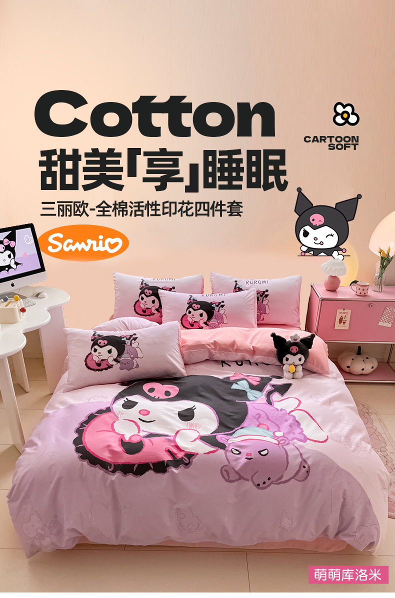 当前位置: 91家纺网 > 商品网购 > 床品套件 > 四件套 > 全棉普通四件套 > 小叮当家纺仓储工厂店 2025新款大版全棉纯棉数码印花三丽鸥系列四件套 萌萌库洛米