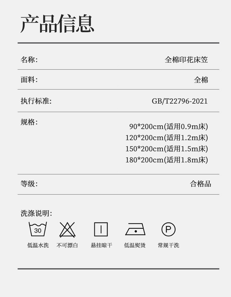 180x200cm单床笠【适合5-25cm厚床垫】 | ¥51.00 |