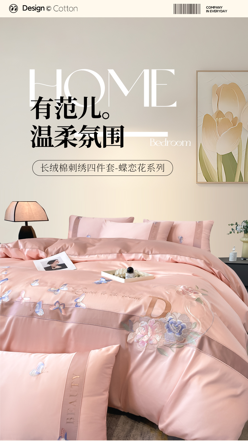 当前位置: 91家纺网 > 商品网购 > 床品套件 > 四件套 > 长绒棉四件套 > 桃园 2025新款纯棉全棉长绒棉刺绣绣花四件套-蝶恋花 (高端礼盒) 蝶恋花-轻奢粉