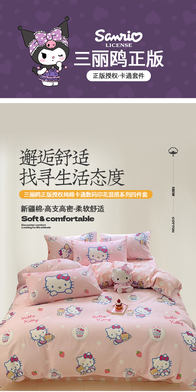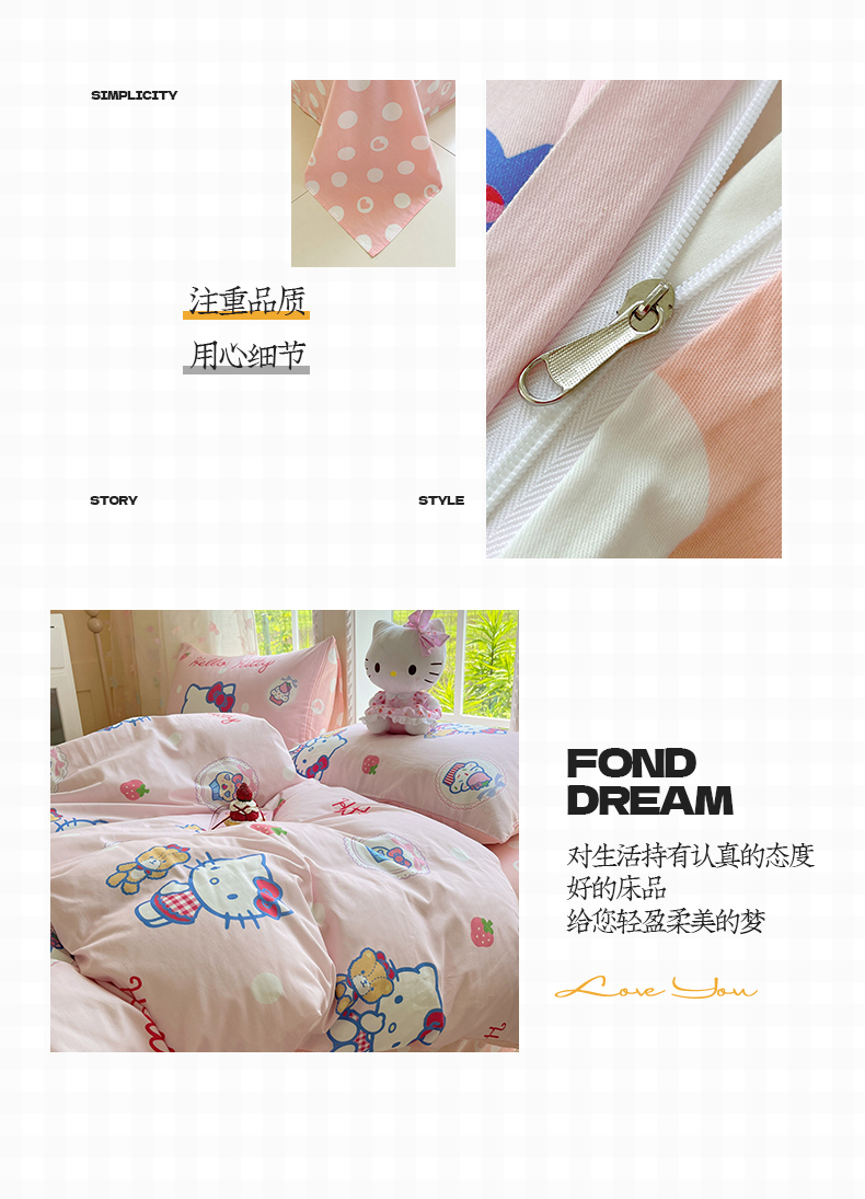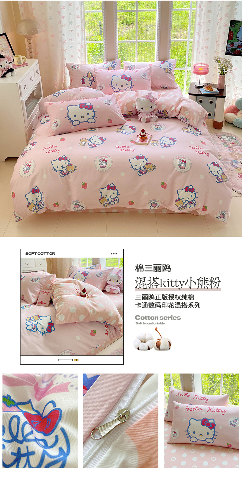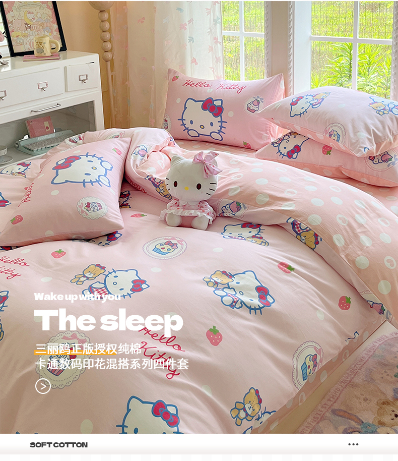 当前位置: 91家纺网 > 商品网购 > 床品套件 > 四件套 > 全棉普通四件套 > 金爱家2025新款三丽鸥正版授权卡通数码印花混搭纯棉印花系列四件套 棉三丽鸥-混搭kitty小熊粉