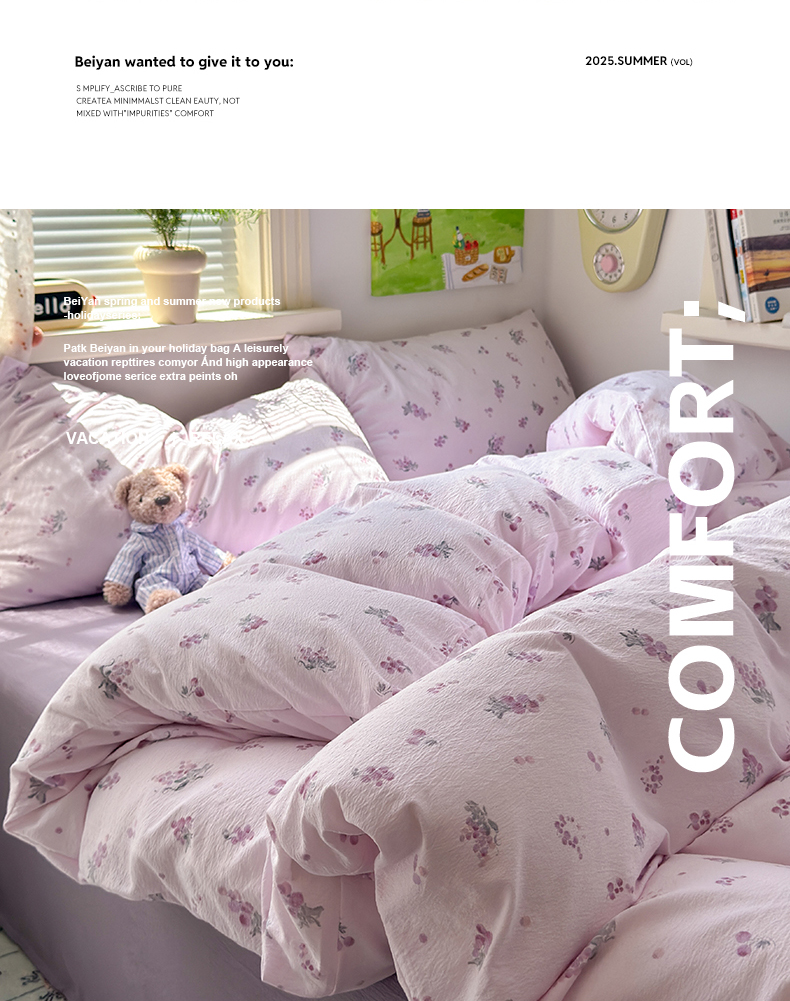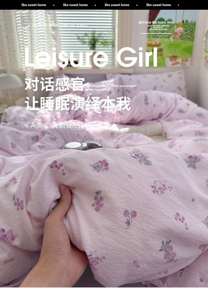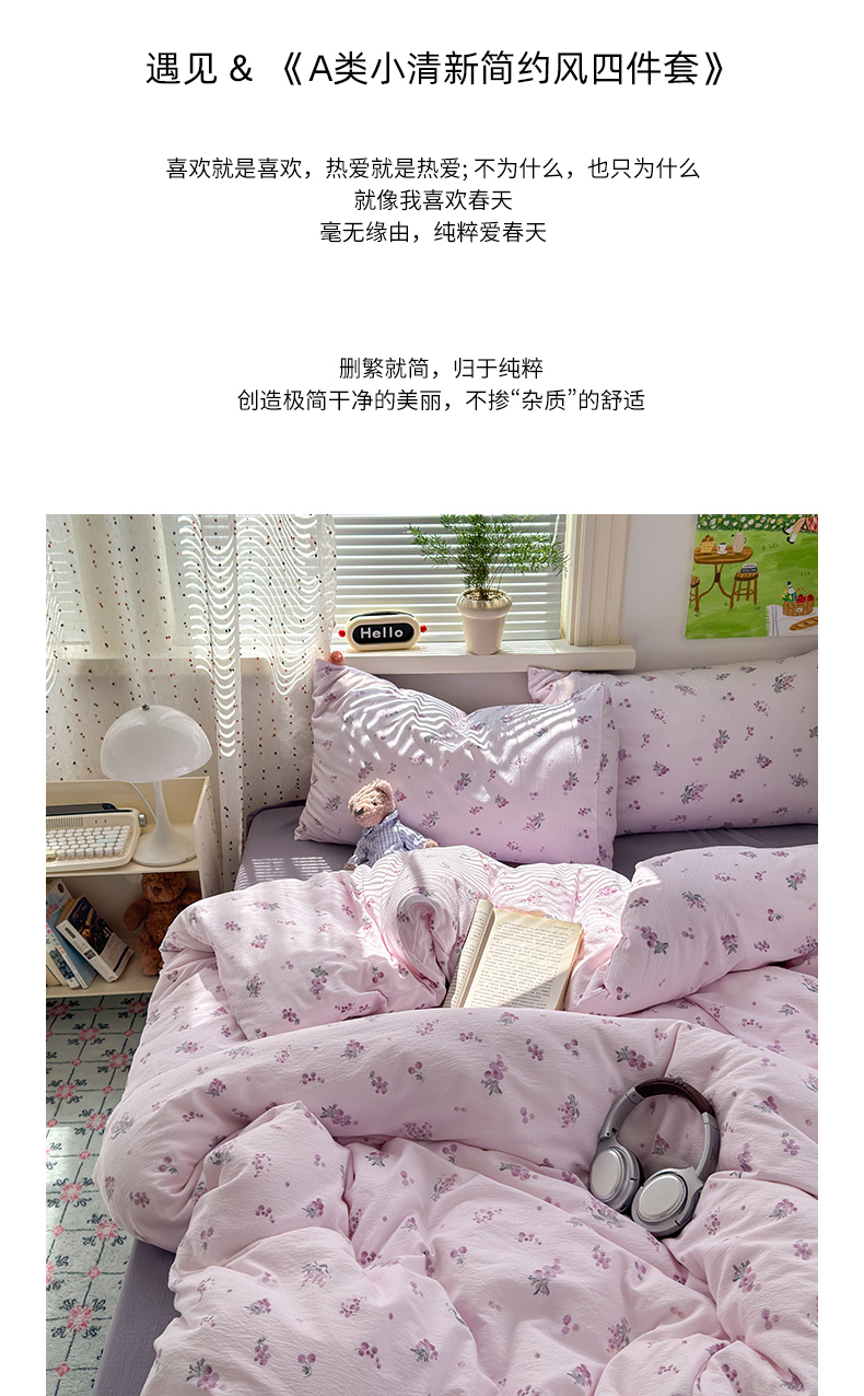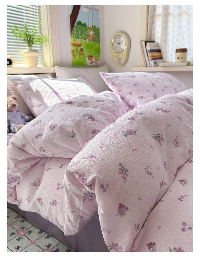 当前位置: 91家纺网 > 商品网购 > 床品套件 > 四件套 > 双层纱四件套 > 沐芷 2025 A类木棉双层纱简约风床上四件套柔软手感宿舍三件套 夏日葡萄