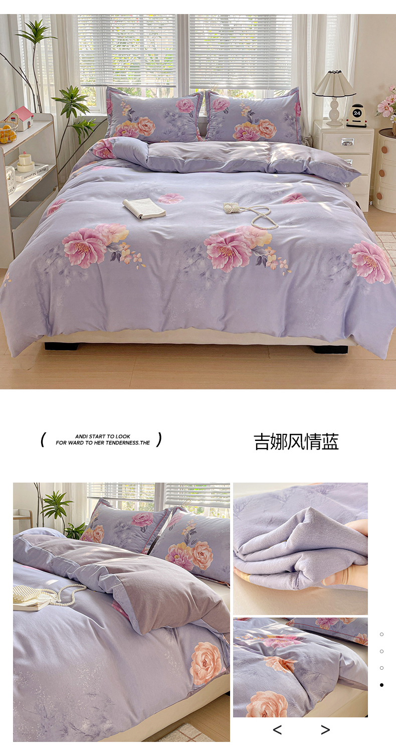 • 91家纺网 家纺一手货源 找家纺 纽缦家纺 2025新款全棉纯棉磨毛印花单被套 被套单件 法芙娜粉