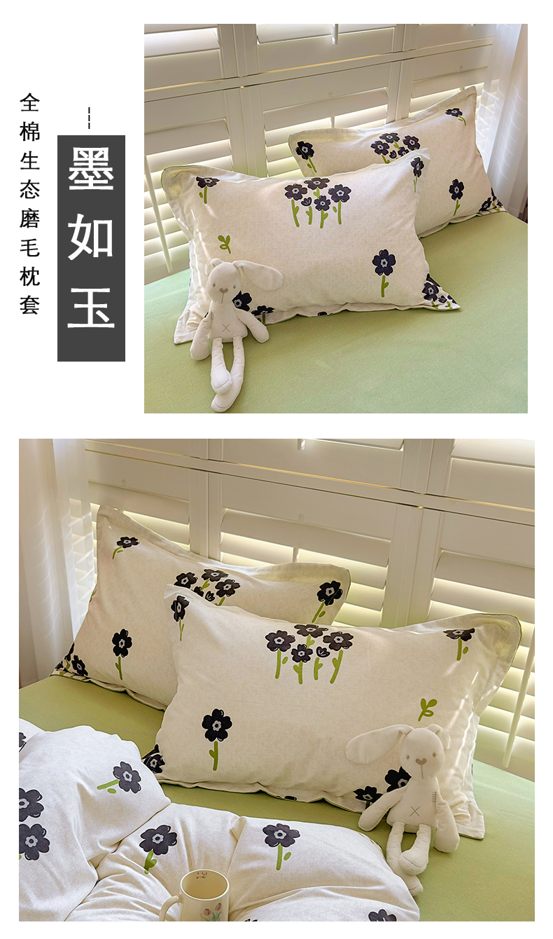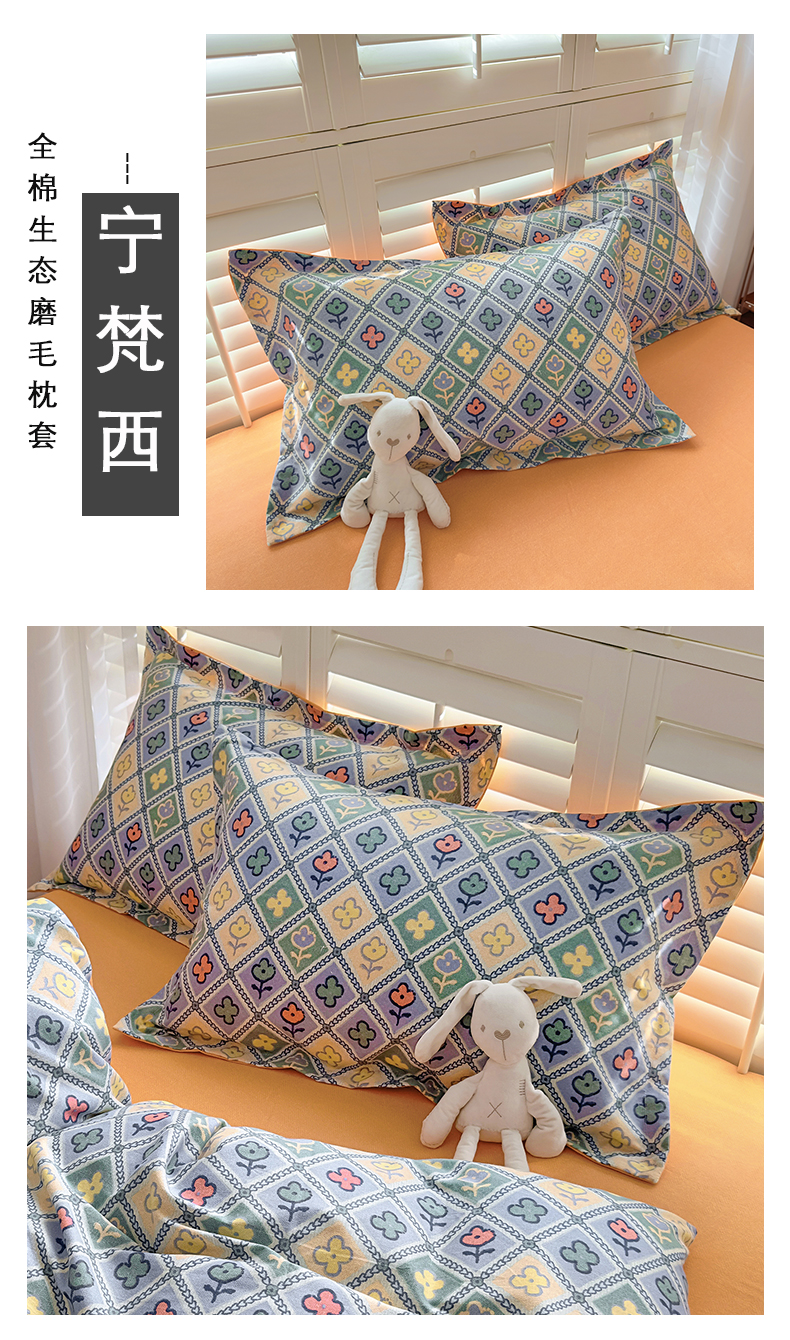 (总)百寐 2025新款秋冬全棉生态磨毛印花单品枕套48*74cm单只一对枕芯保护套,高岭花,花满径,花诺柔,花千朵,锦绣绿,兰郁香,落山秋,玫瑰露,萌萌狗,墨如玉,宁梵西,牵牛花,叹花郁,小甜心