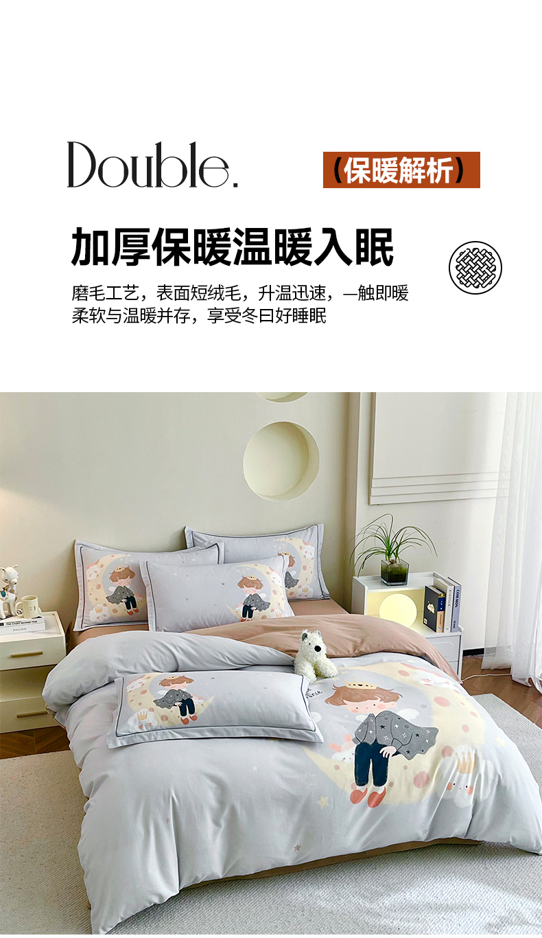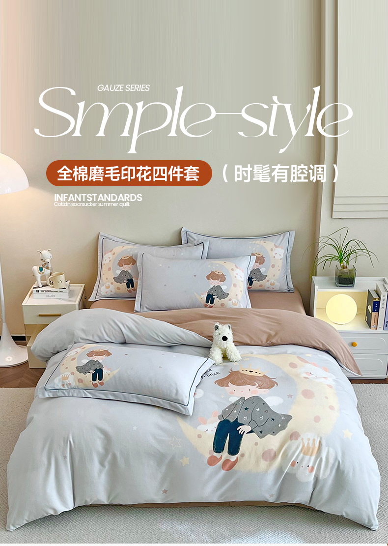 当前位置: 91家纺网 > 商品网购 > 床品套件 > 四件套 > 全棉普通四件套 > 沐白家居 2025新款全棉生态磨毛四件套小王子