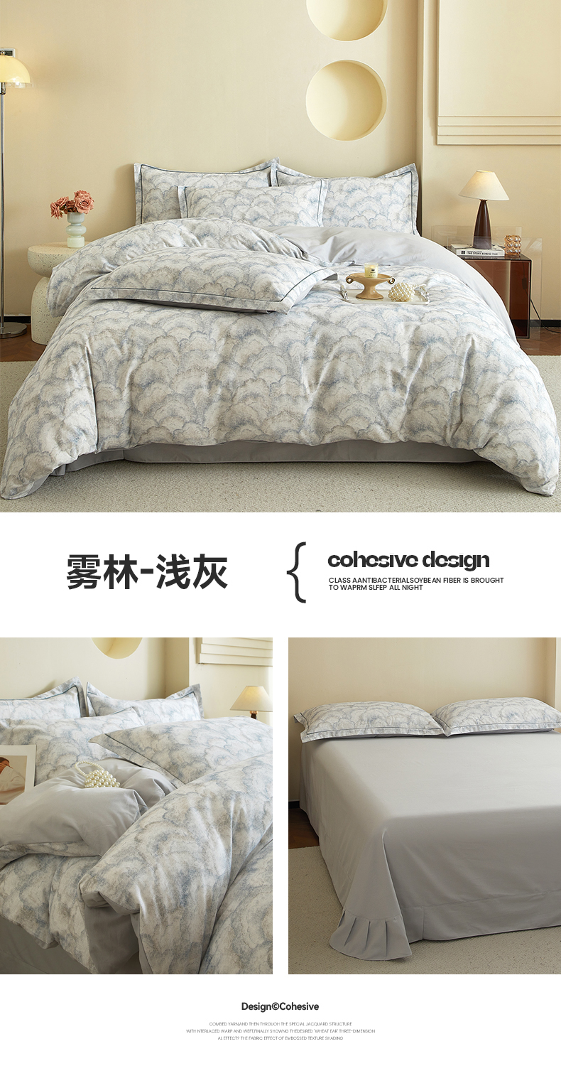 当前位置: 91家纺网 > 商品网购 > 床品套件 > 四件套 > 全棉普通四件套 > 沐白家居 2025新款全棉生态磨毛四件套雾林-浅灰