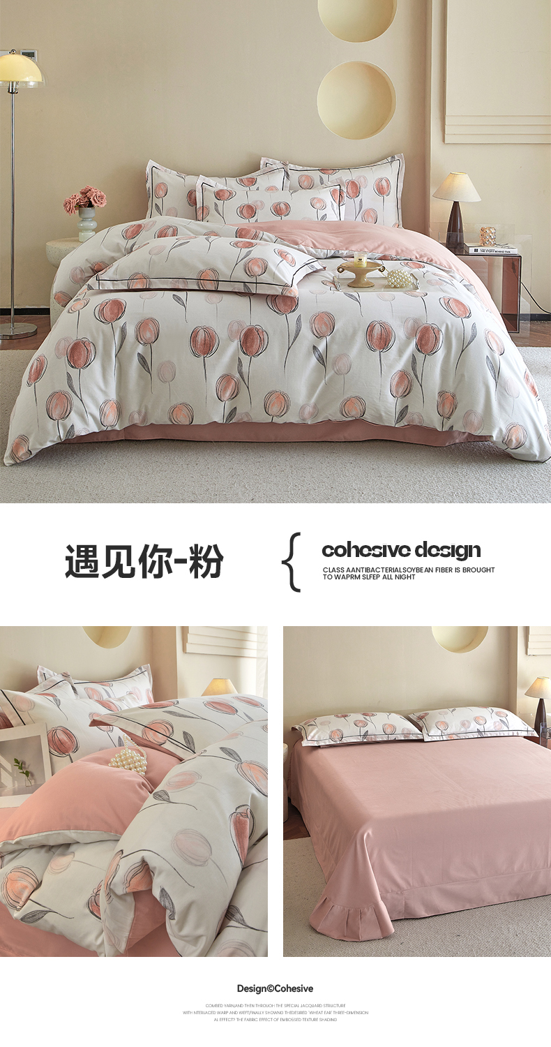 当前位置: 91家纺网 > 商品网购 > 床品套件 > 四件套 > 全棉普通四件套 > 沐白家居 2025新款全棉生态磨毛四件套遇见你-粉
