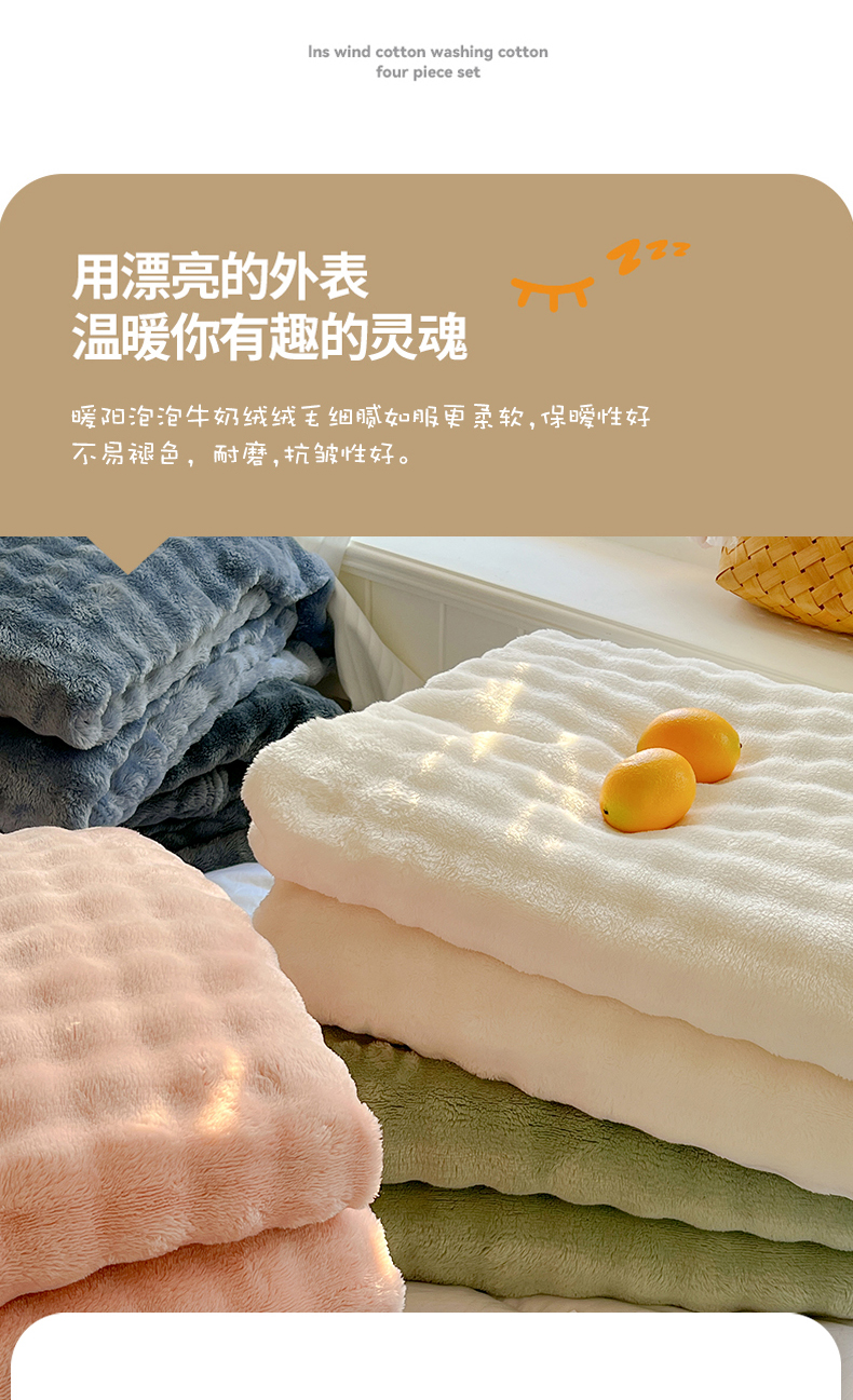 (总)耀悦家纺 2024新款兔毛绒四件套兔毛绒毛毯牛奶绒四件套,碧绿,奶咖,烟灰,珍珠白