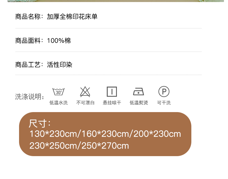 商品名称:恩泽家纺 2025新款全棉纯棉12868喷气印花系列床单单品床单单件单床单-第二批 东方树叶