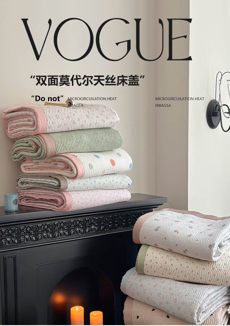 麦伦家居 2025新款双面莫代尔天丝床盖 清雅-米