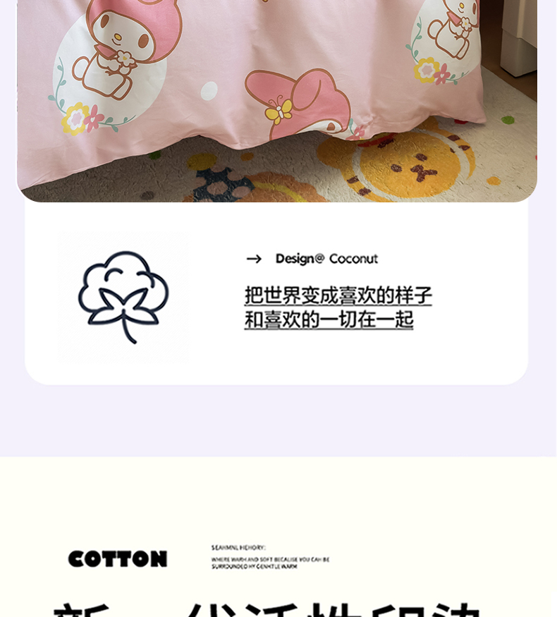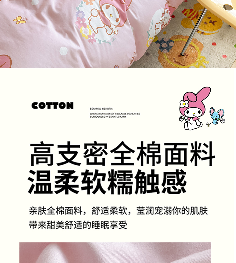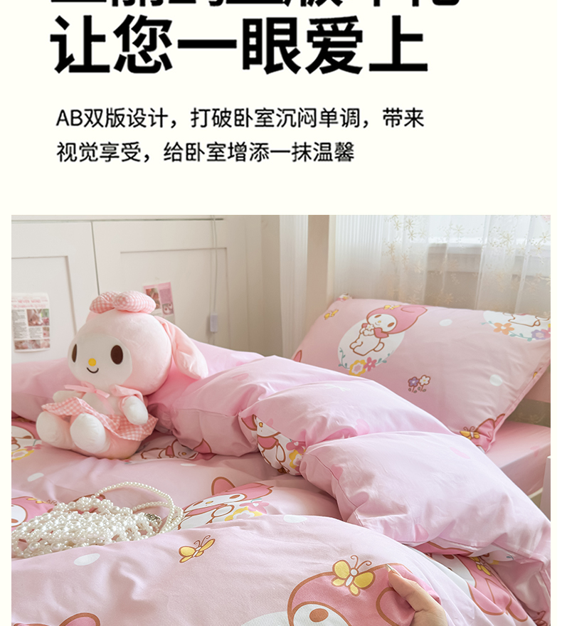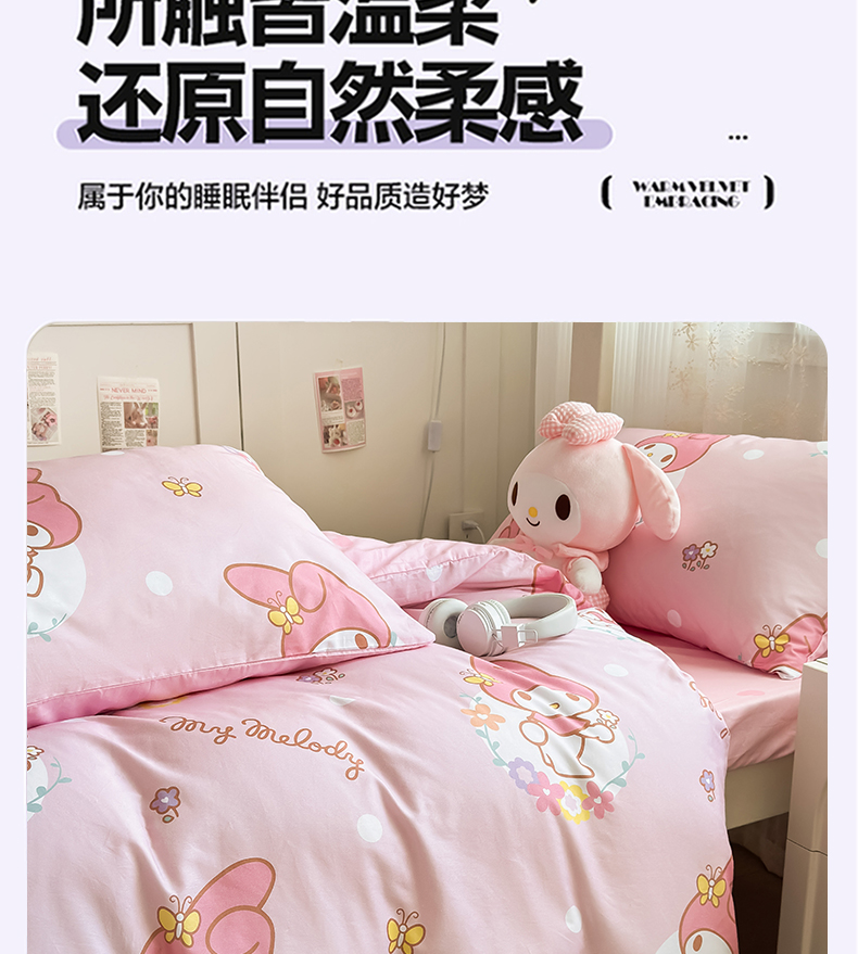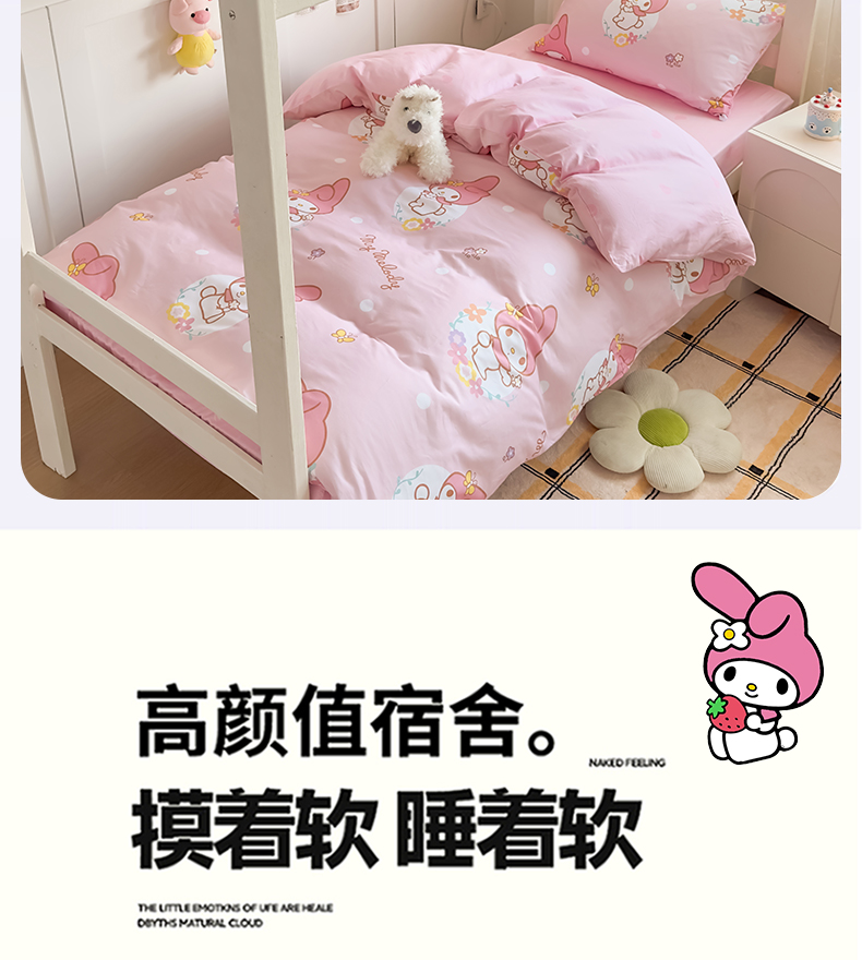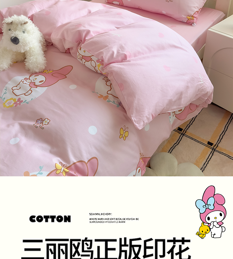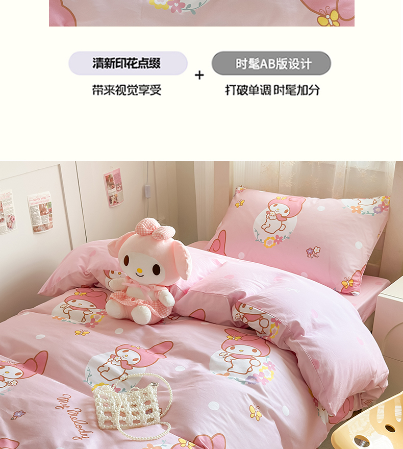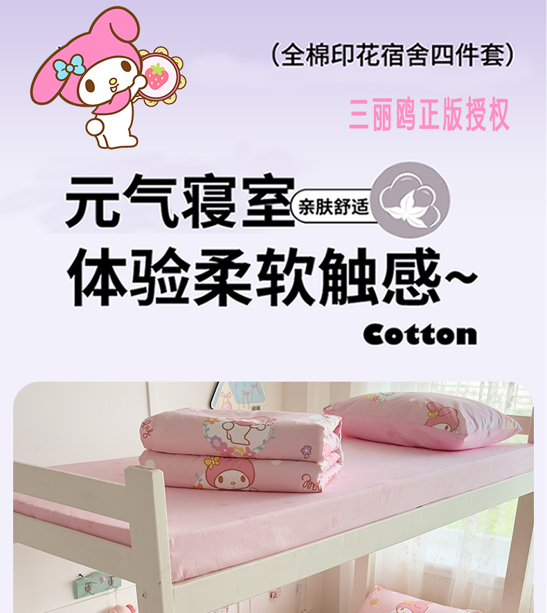 当前位置: 91家纺网 > 商品网购 > 床品套件 > 四件套 > 全棉普通四件套 > 浩诚 2025新款三丽鸥专版花型全棉纯棉学生三件套四件套 粉雾