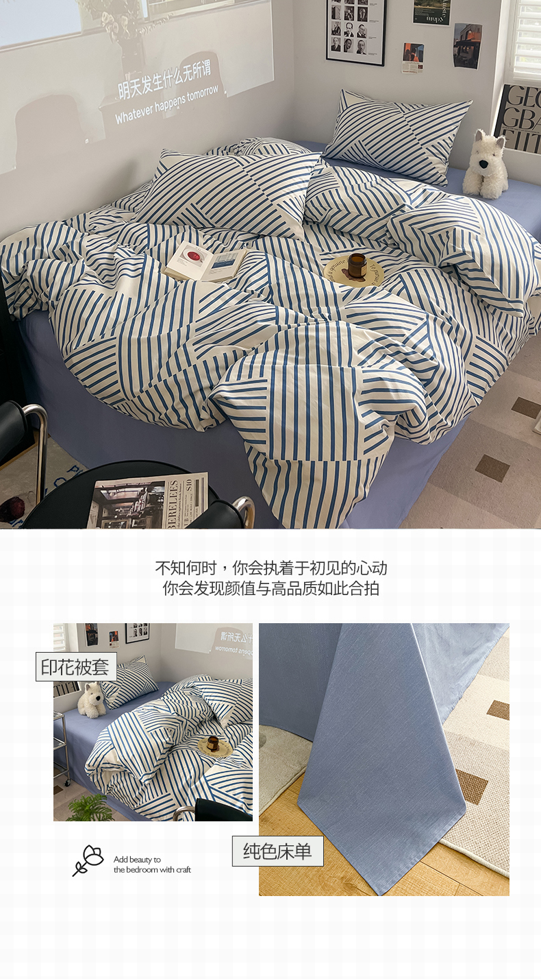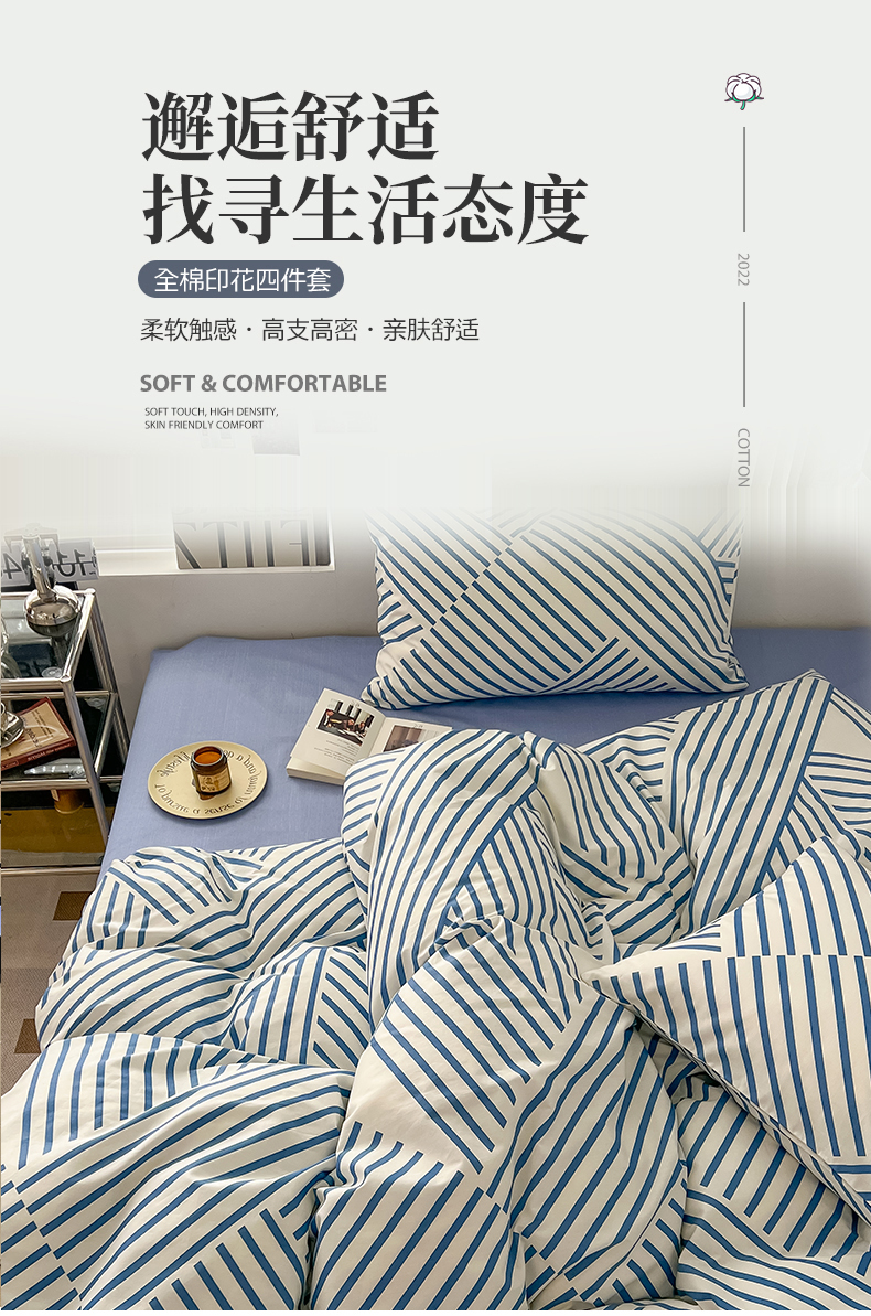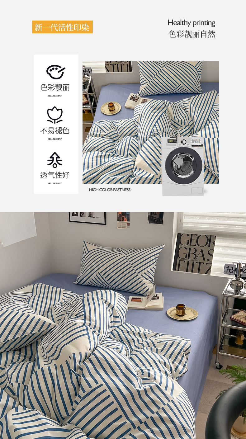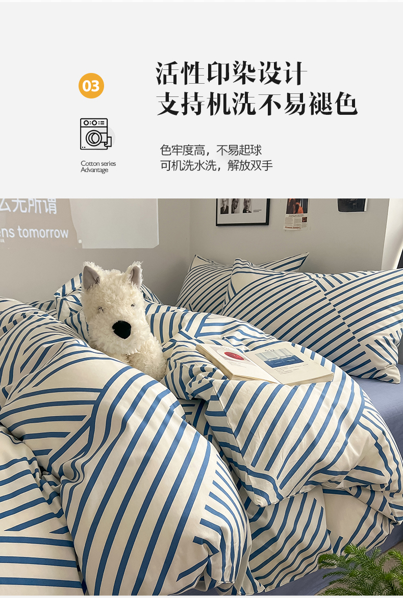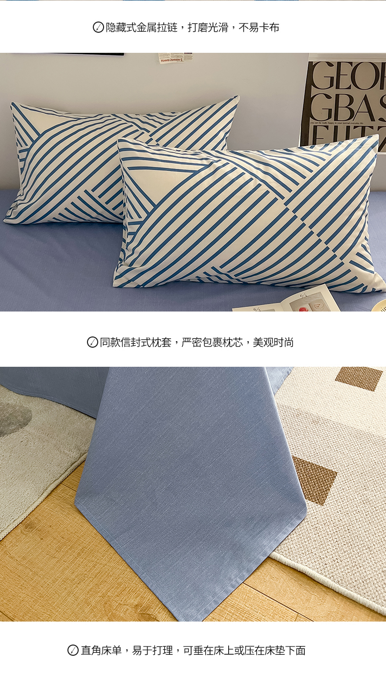 当前位置: 91家纺网 > 商品网购 > 床品套件 > 四件套 > 全棉普通四件套 > 吉象家纺 2025新款全棉纯棉印花北欧简约系列四件套 语初蓝