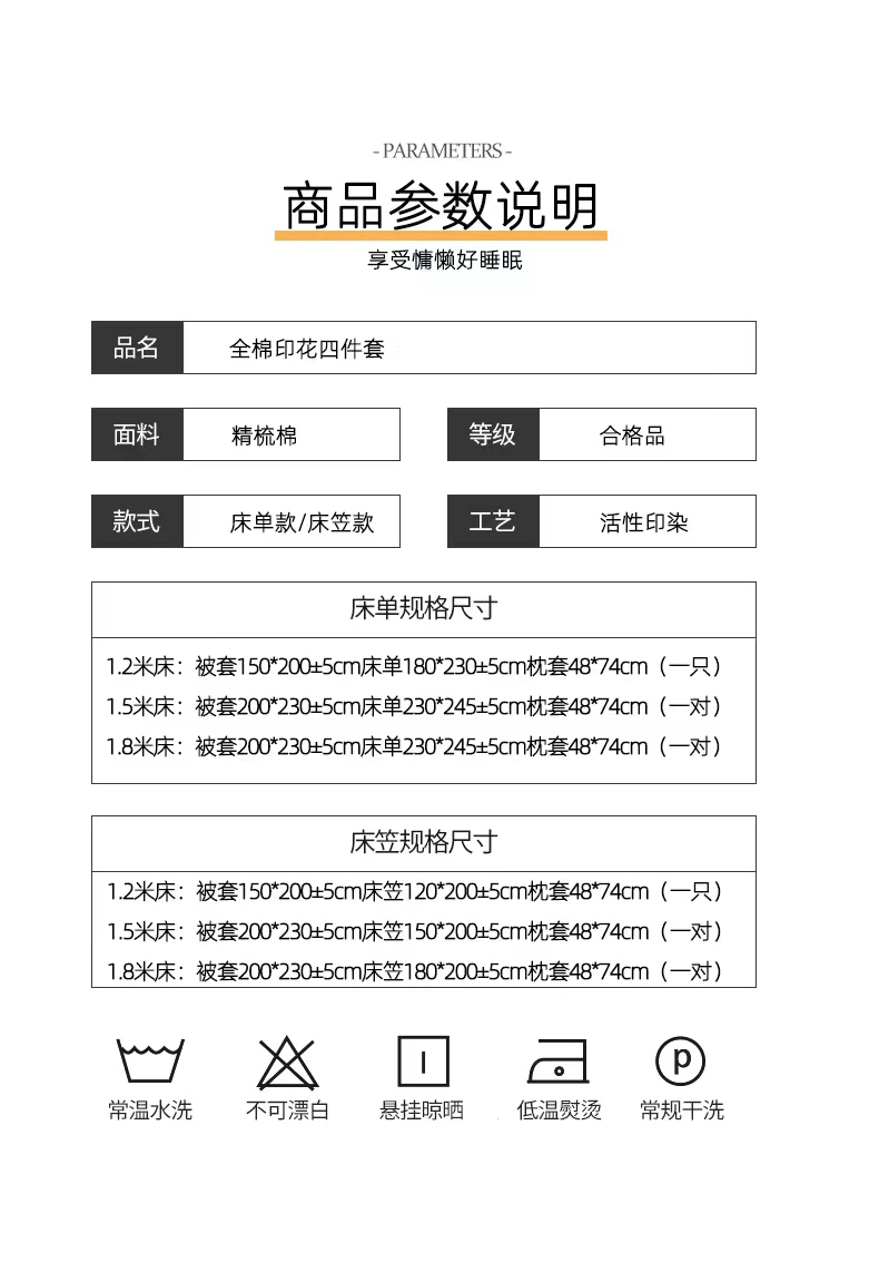 【床笠款】1.5四件套-被套200x230 | ¥120.00 |