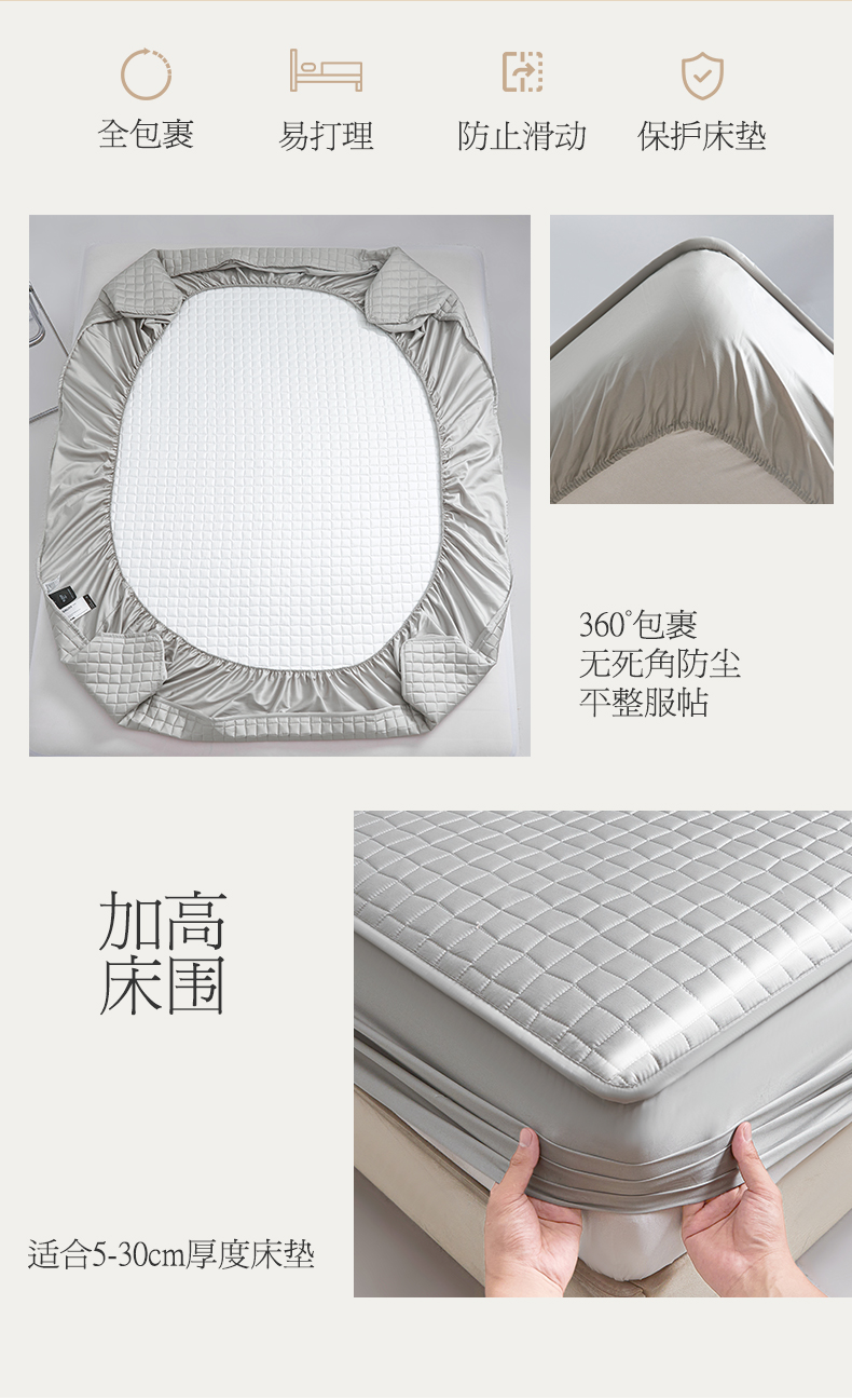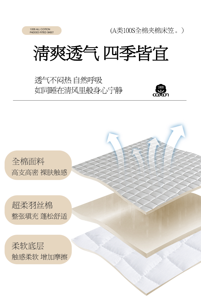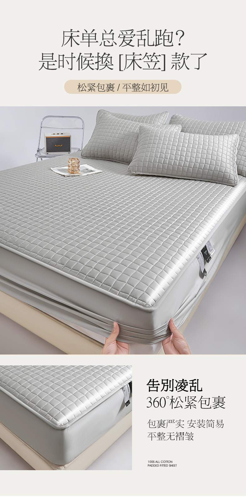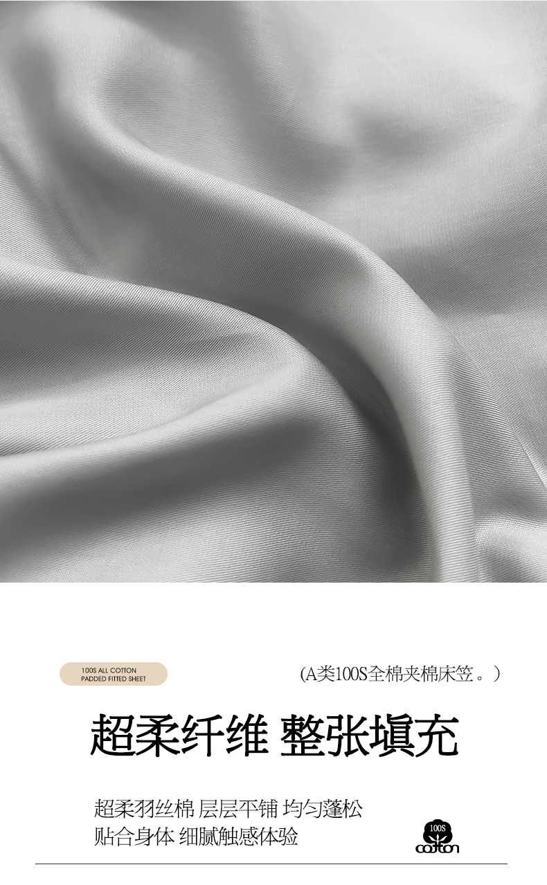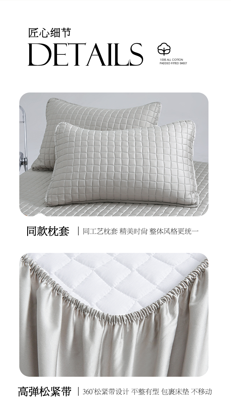 商品名称:伊人坊 2025新款A类全棉纯棉100s夹棉床笠 星辰灰