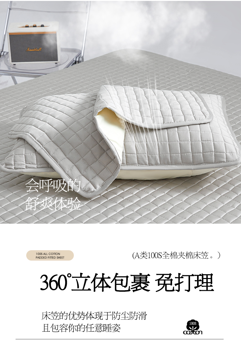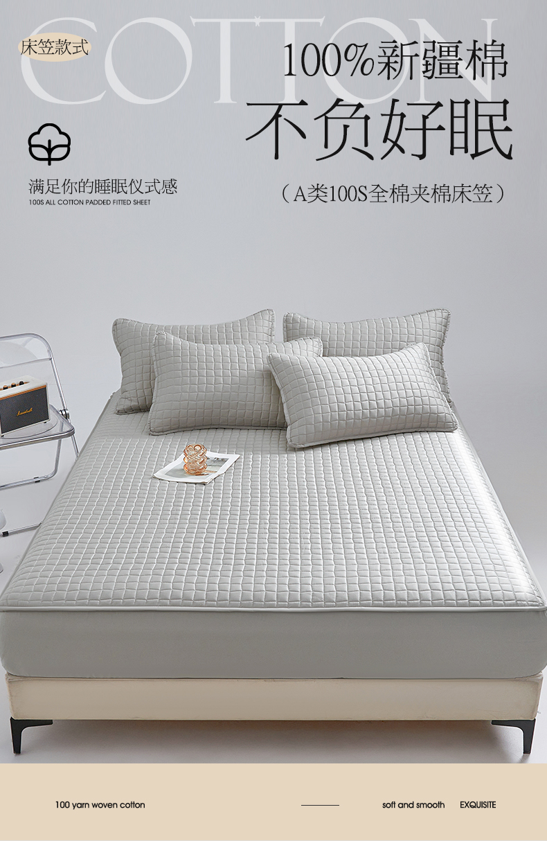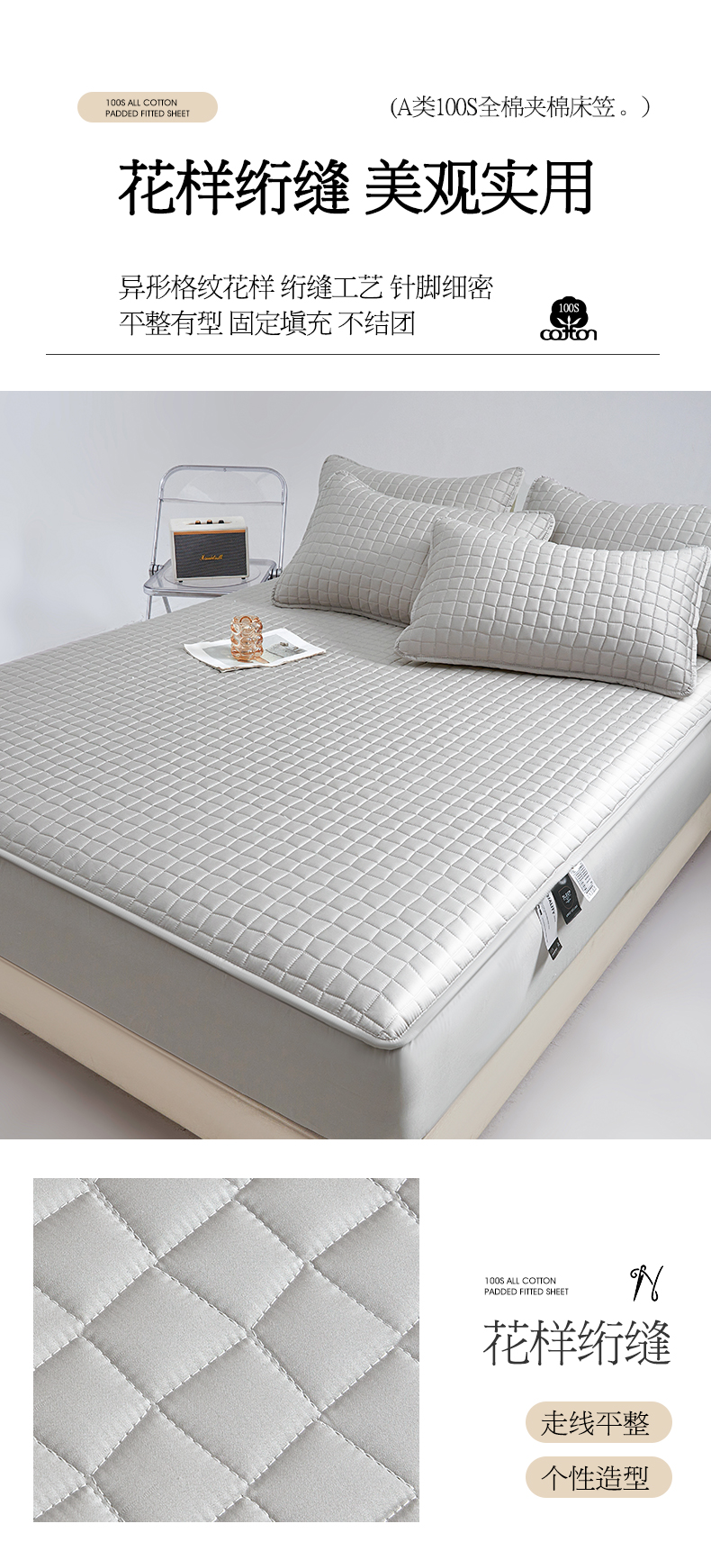 (总)伊人坊 2025新款A类全棉纯棉100s夹棉床笠,砂糖粉,星辰灰