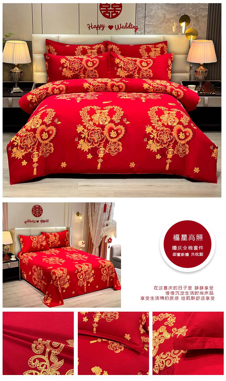 (总)居美良品 2025新款大红色床单全棉磨毛床单结婚婚庆纯棉床单,花好月圆,花开富贵,浪漫情缘,龙凤呈祥,相亲相爱,幸福时刻,永结同心,中国结