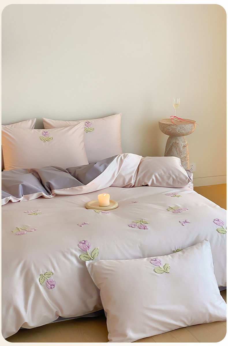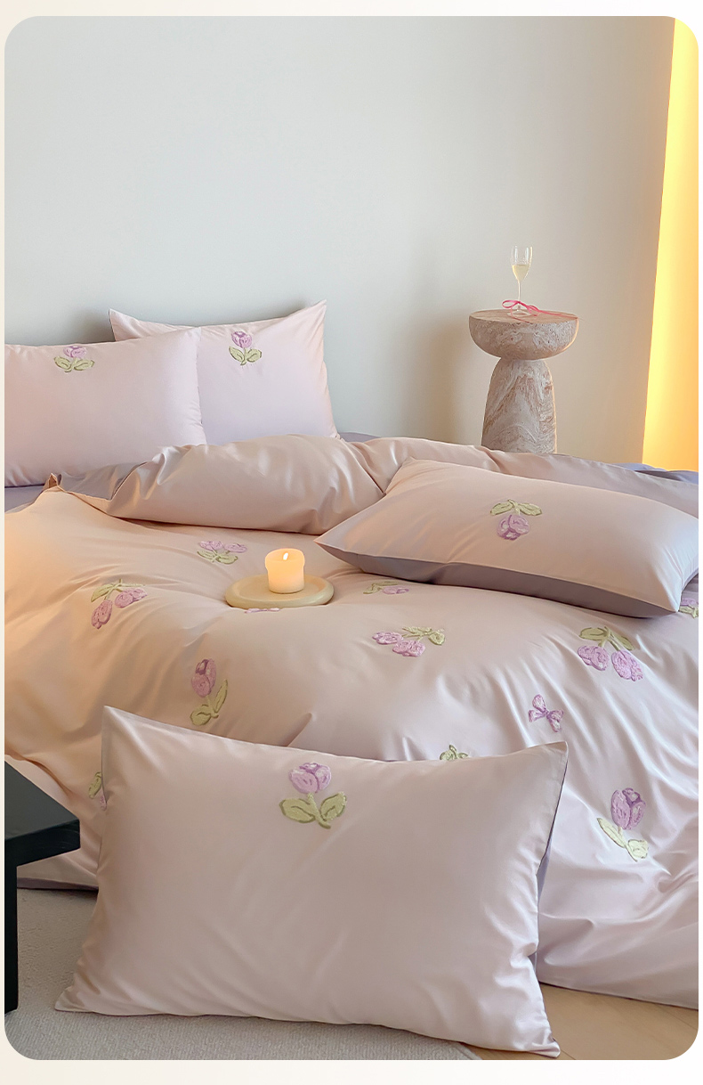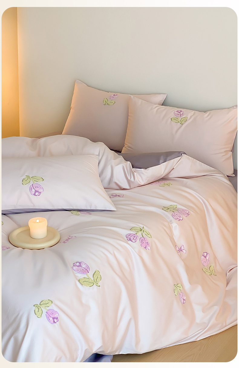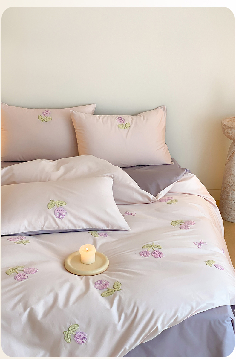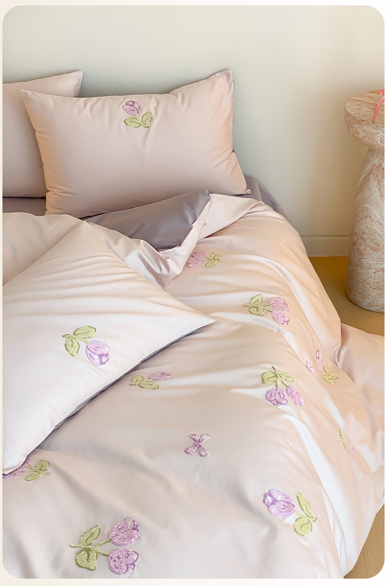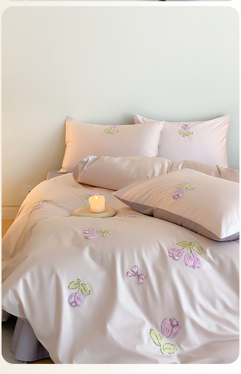 云栖2025全棉刺绣纯色纯棉长绒棉四件套-乐萌系列 紫色郁金香