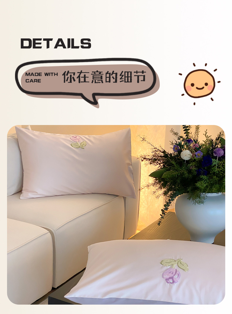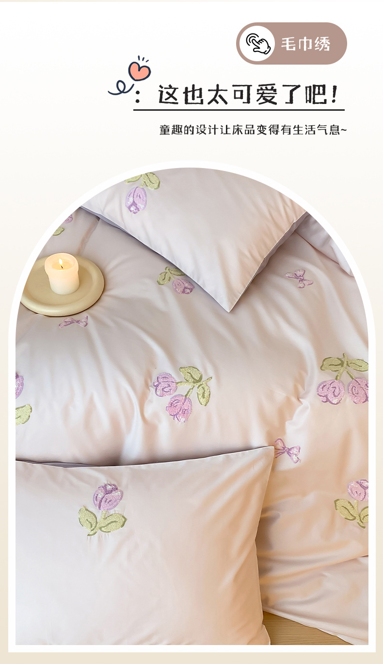 商品名称:云栖2025全棉刺绣纯色纯棉长绒棉四件套-乐萌系列 紫色郁金香