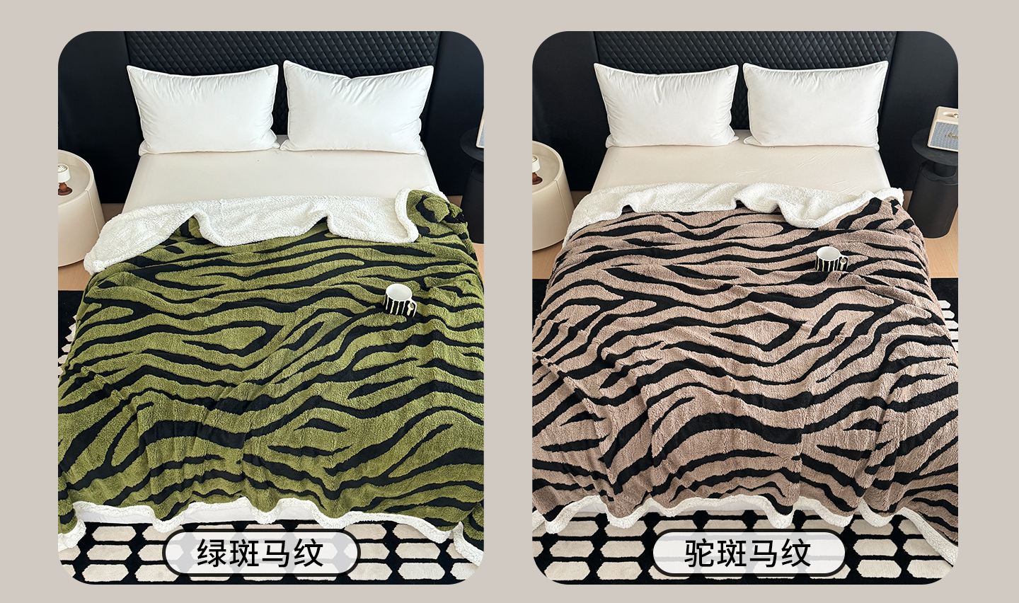 (总)丹本家纺 2025新款双层阳离子斑马纹提花塔芙绒羊羔绒跨境双层毛毯盖毯毯子,白斑马纹,粉斑马纹,灰斑马纹,绿斑马纹,驼斑马纹
