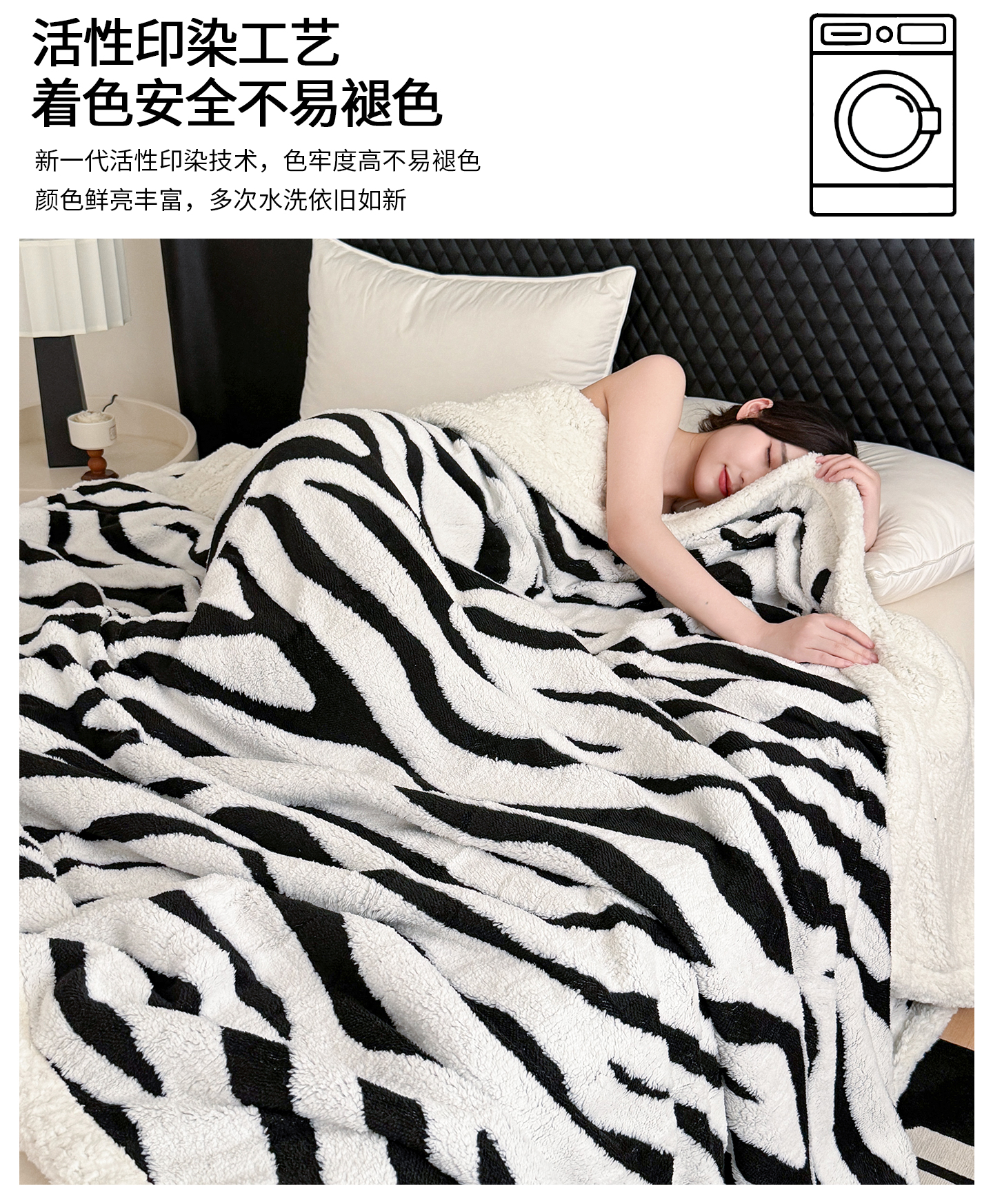 商品名称:(总)丹本家纺 2025新款双层阳离子斑马纹提花塔芙绒羊羔绒跨境双层毛毯盖毯毯子