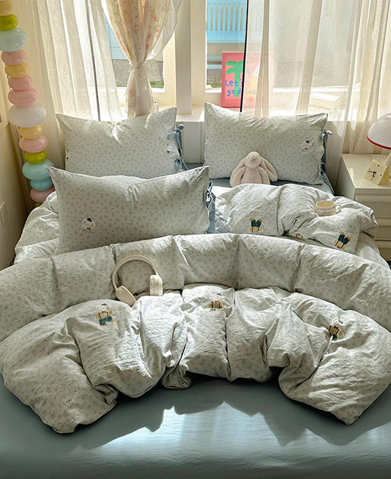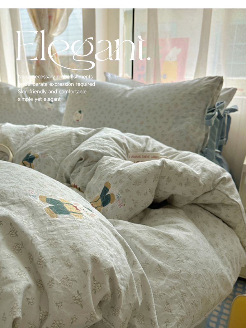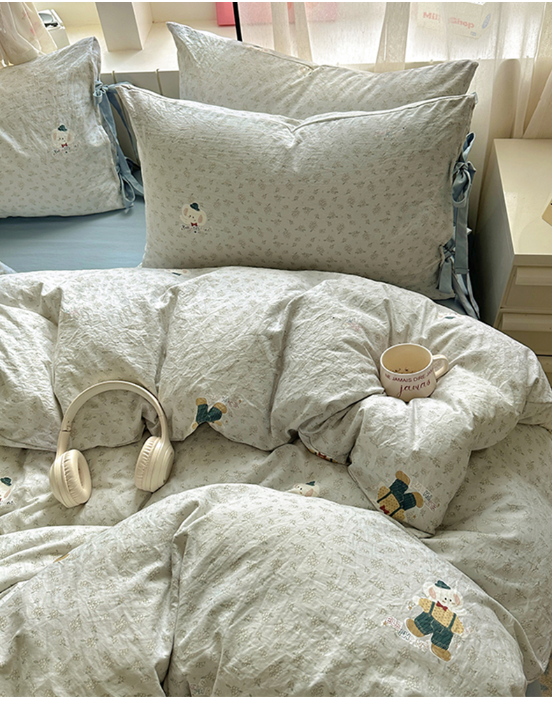 (总)漫仙阁家纺 2025新品云朵棉可爱风卡通烫画单床笠枕套三件套,小浣熊,邻家女孩,小青蛙,兔小姐,花仙子,狗狗家族
