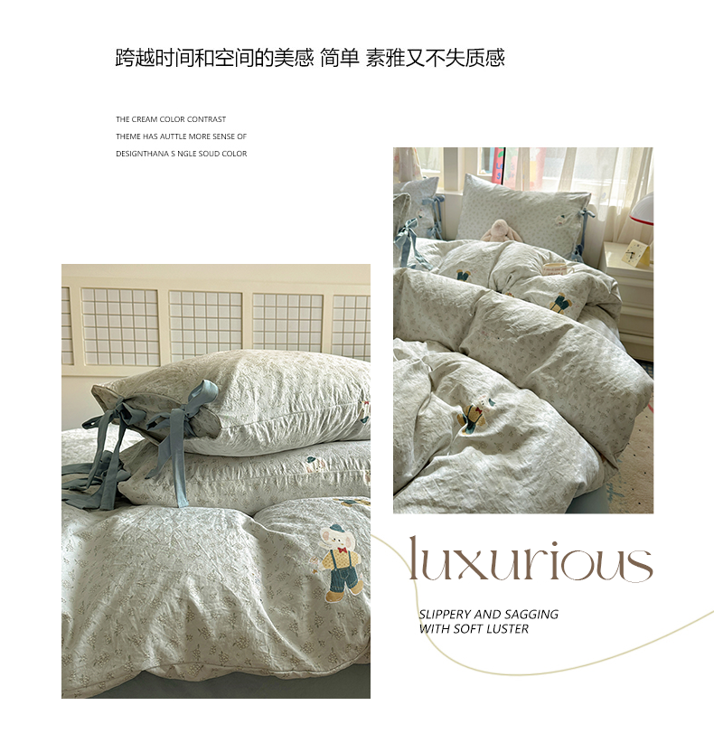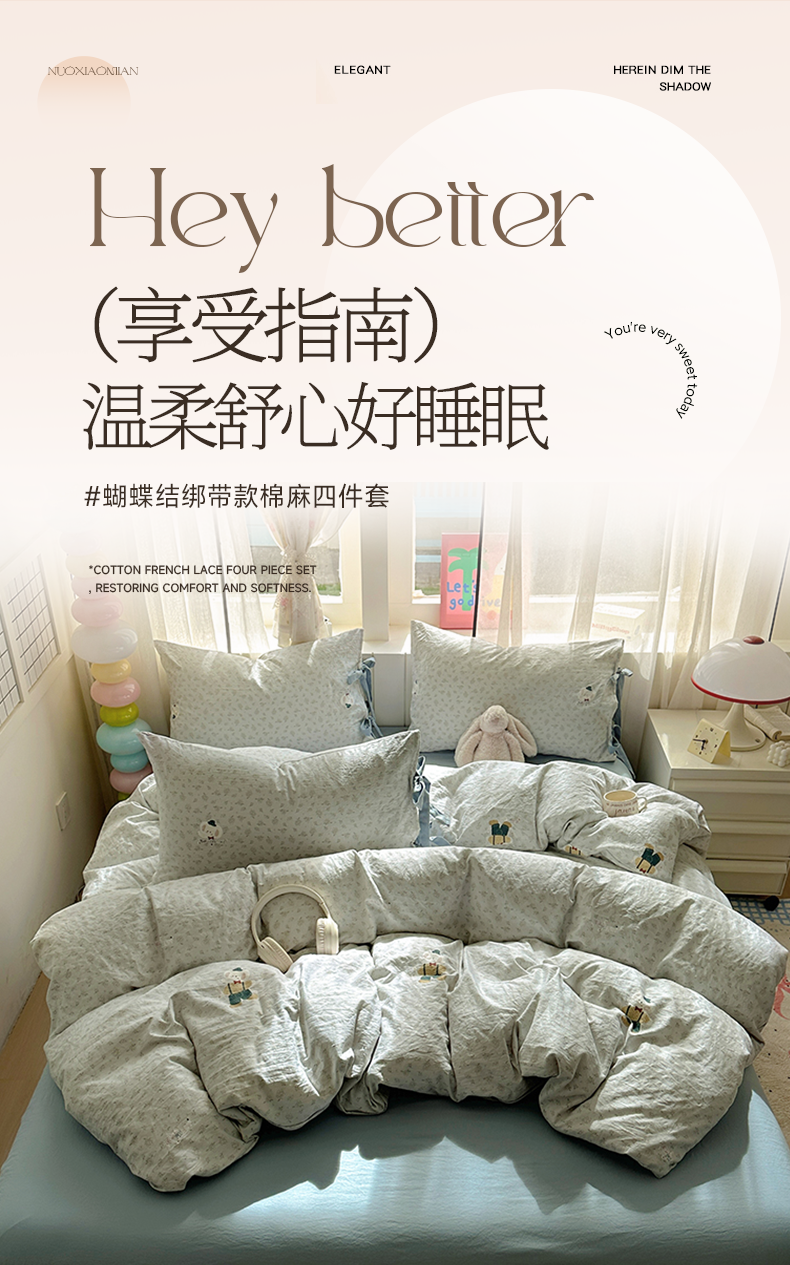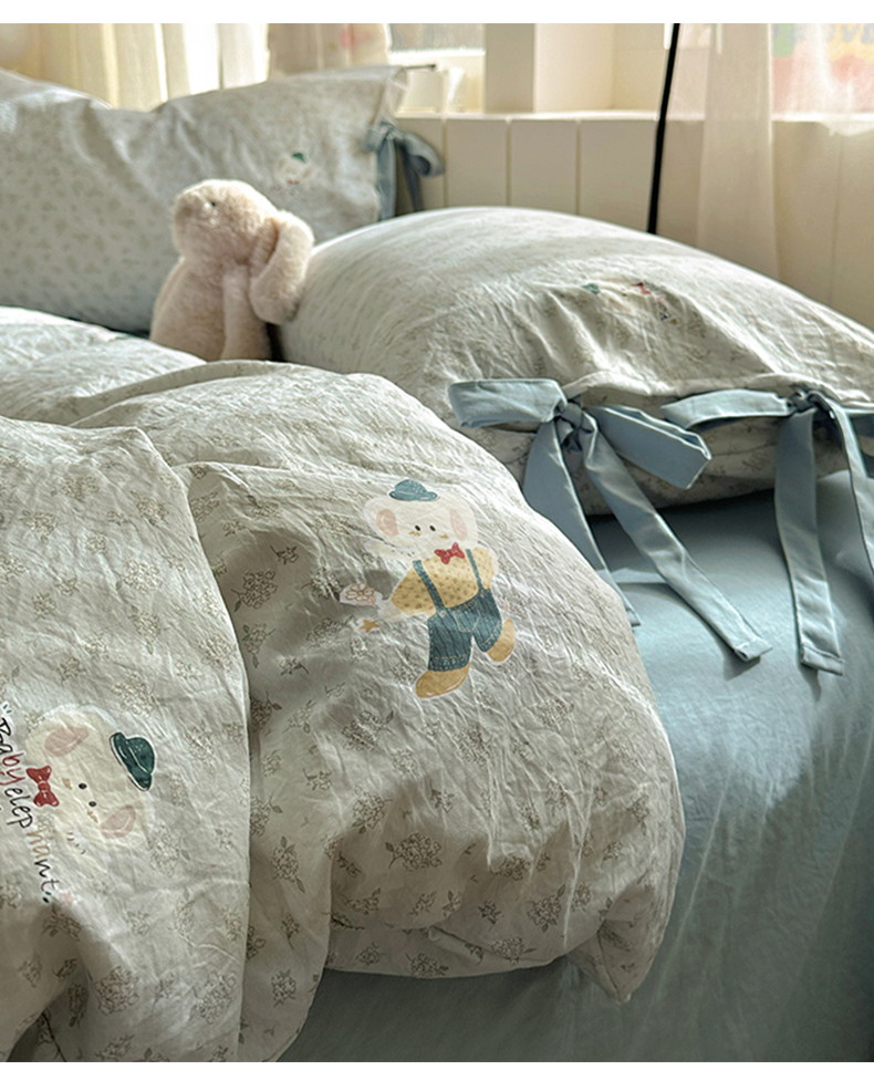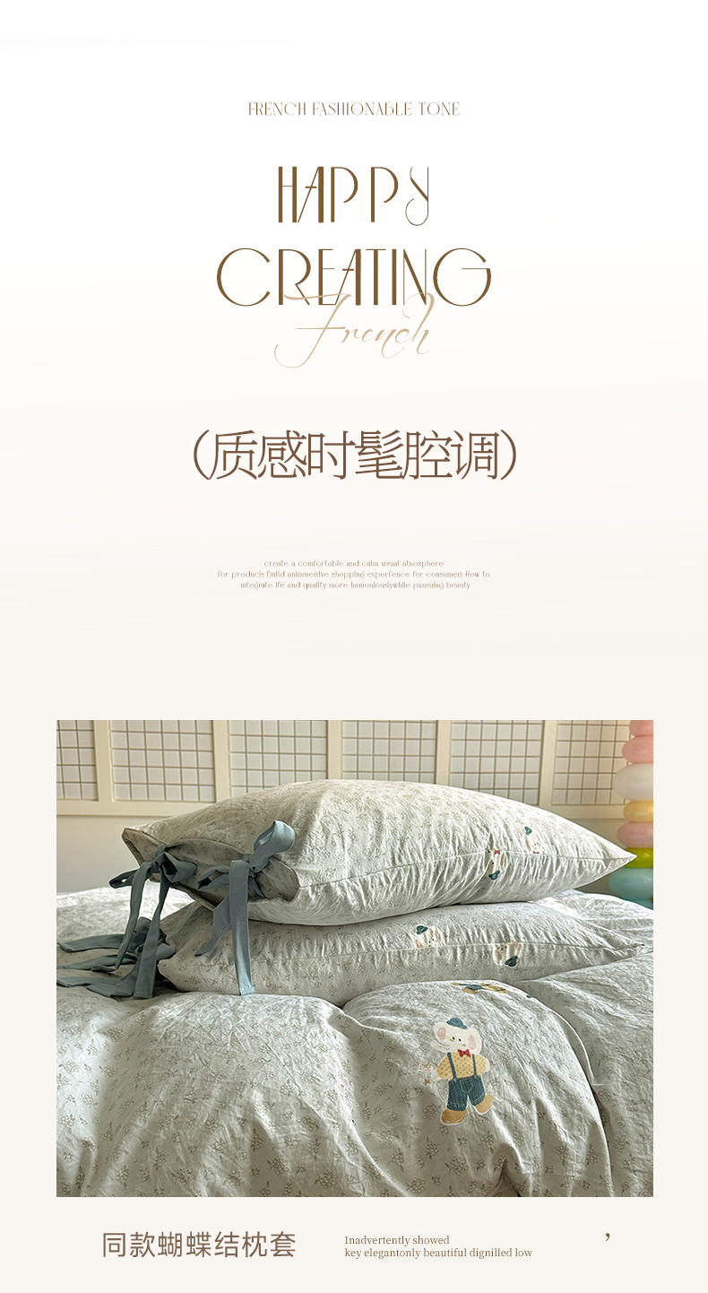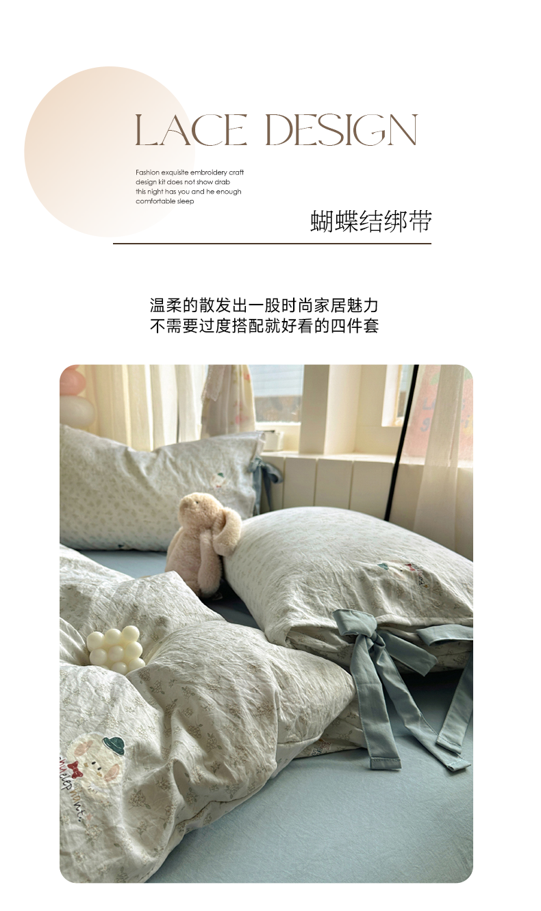 (总)漫仙阁家纺 2025新款蝴蝶结绑带款四件套-卡通系列,格子小狗,春日序曲,粉小兔,萌宠小狮子,裙子小兔,绅士小象-蓝,绅士小象-米黄,田园女孩,紫色小熊,欢乐小象