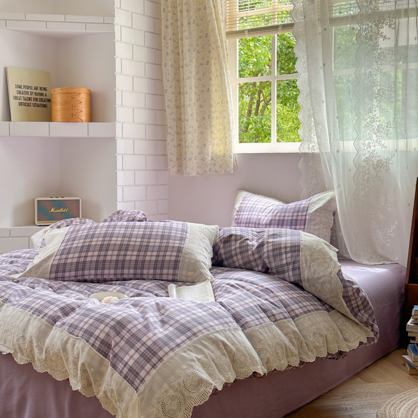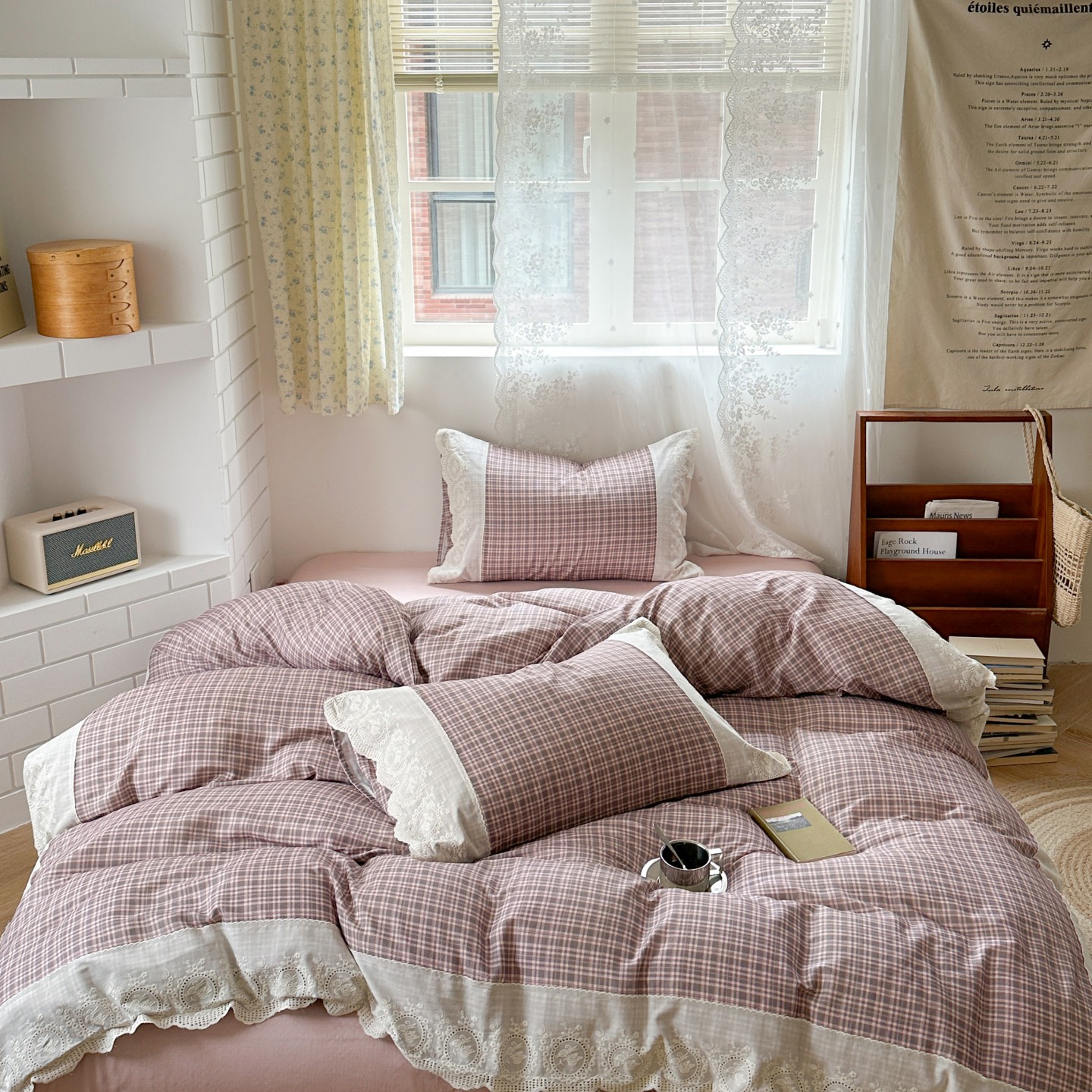 觅糖家纺 2025新款A类全棉云感双层纱蕾丝花边四件套 西西里格