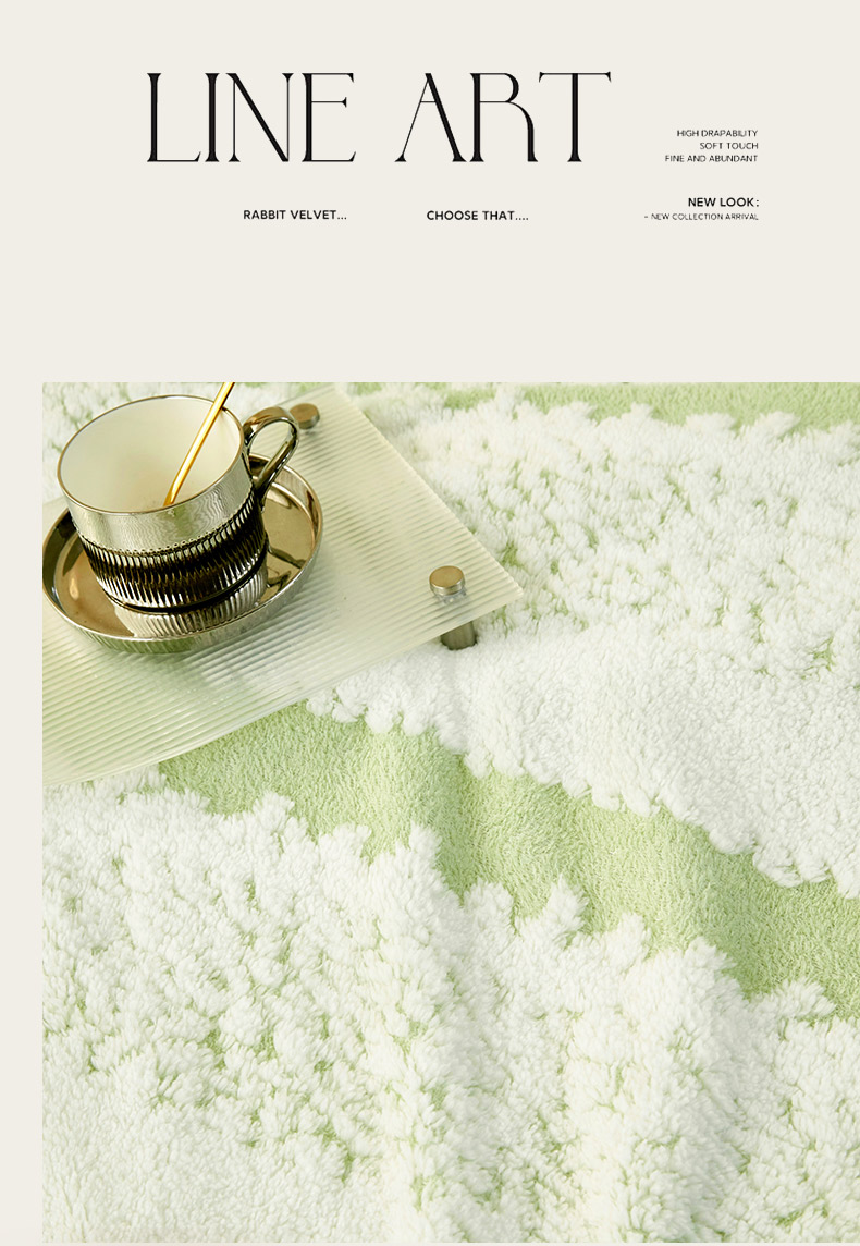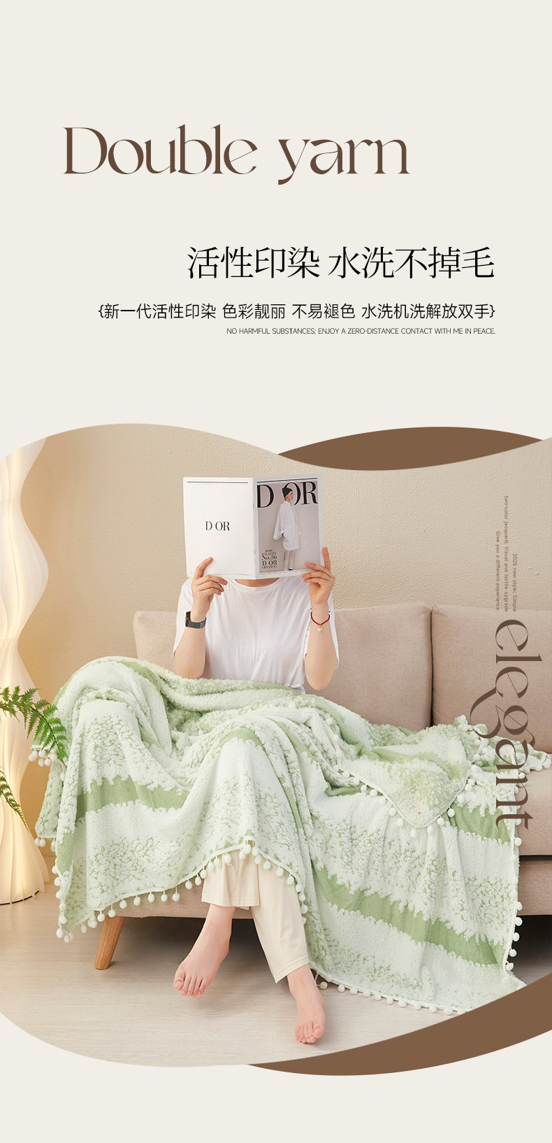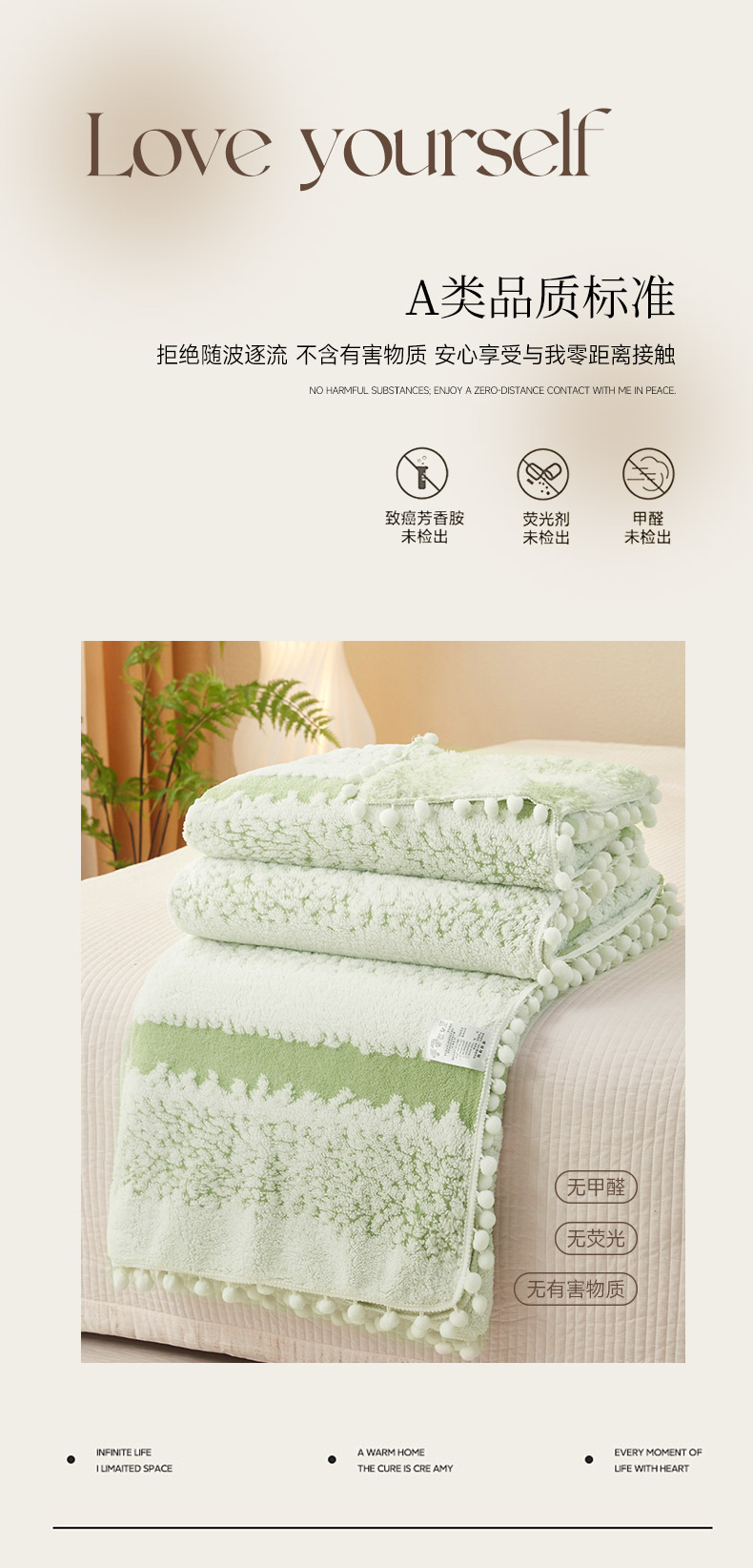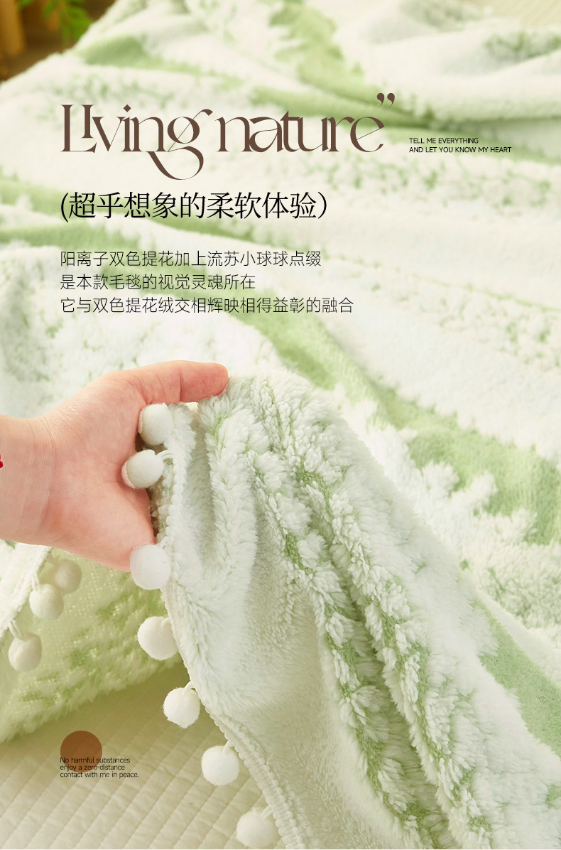莱家富 2026新款跨境专供外贸出口300克重双面条纹阳离子提花毛球毛毯盖毯休闲小毯子冬季床单 雪球梦语雅绿