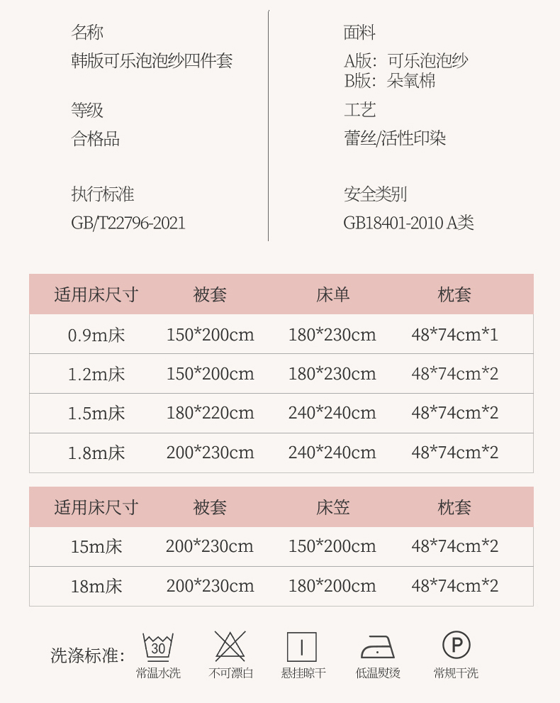商品名称:(总)梦庭帛美 2025新款韩版公主风可乐泡泡纱四件套