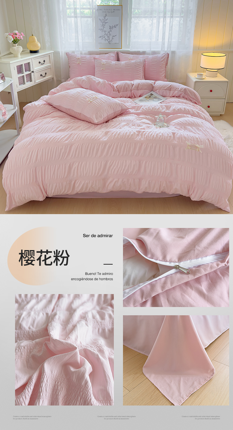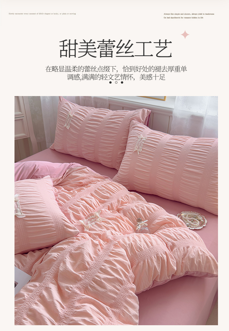 (总)梦庭帛美 2025新款韩版公主风可乐泡泡纱四件套