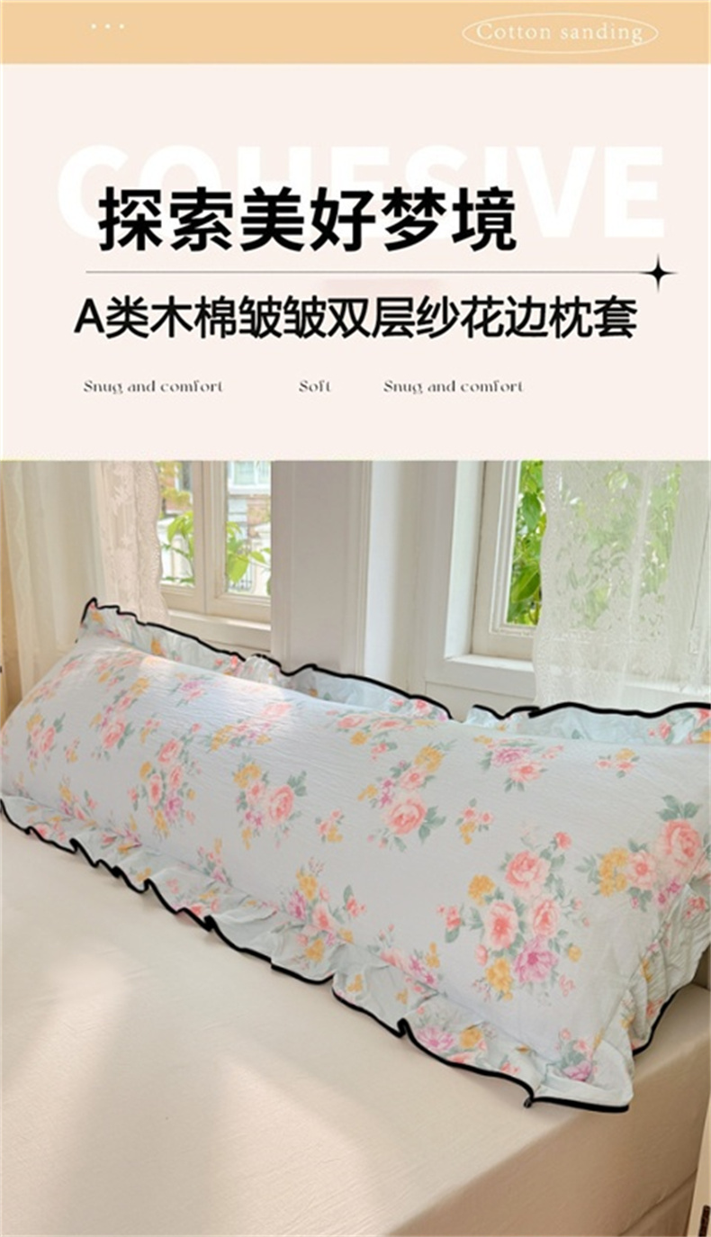 商品名称:梦舒羽 2025新款云感双层纱双人花边枕套情侣双人1.5m枕芯套1.8床枕头套 繁花入梦