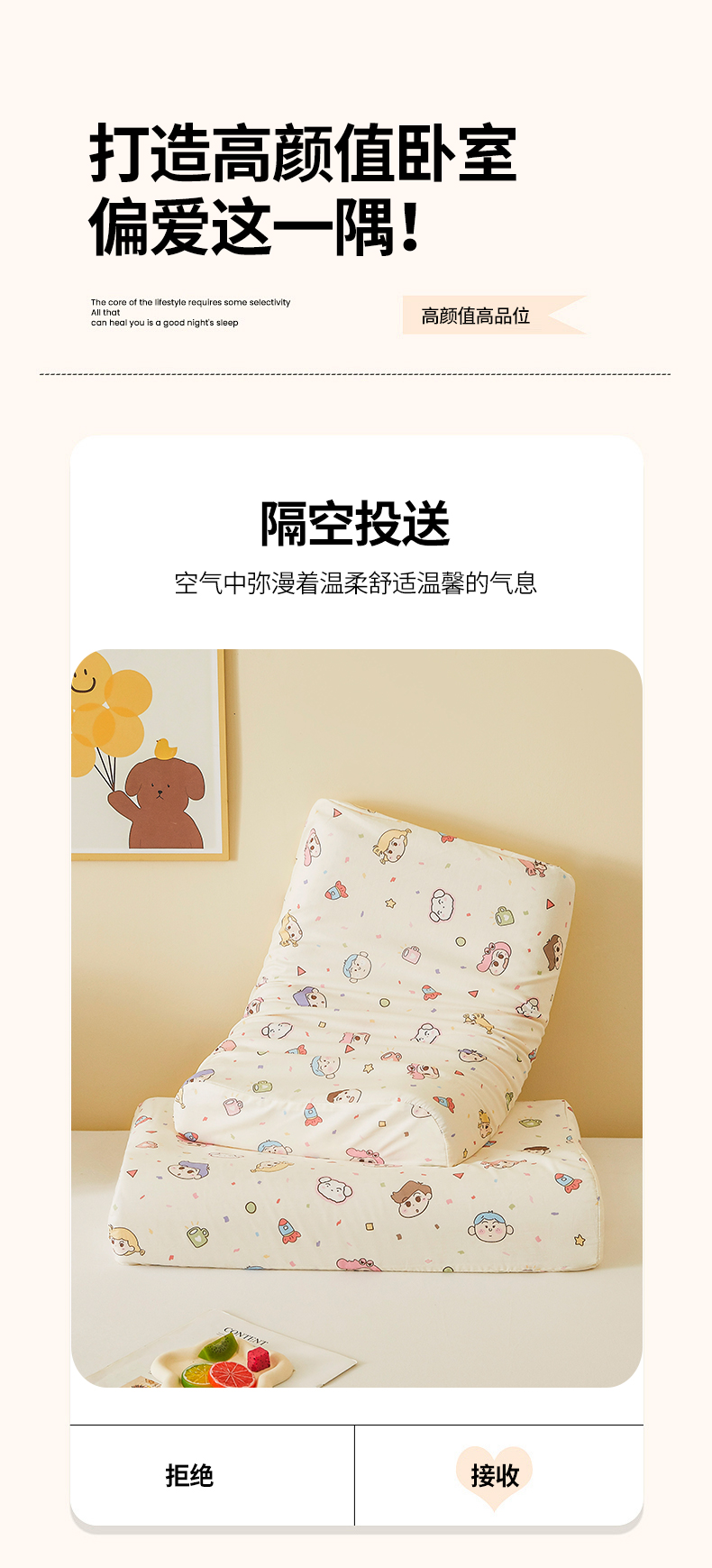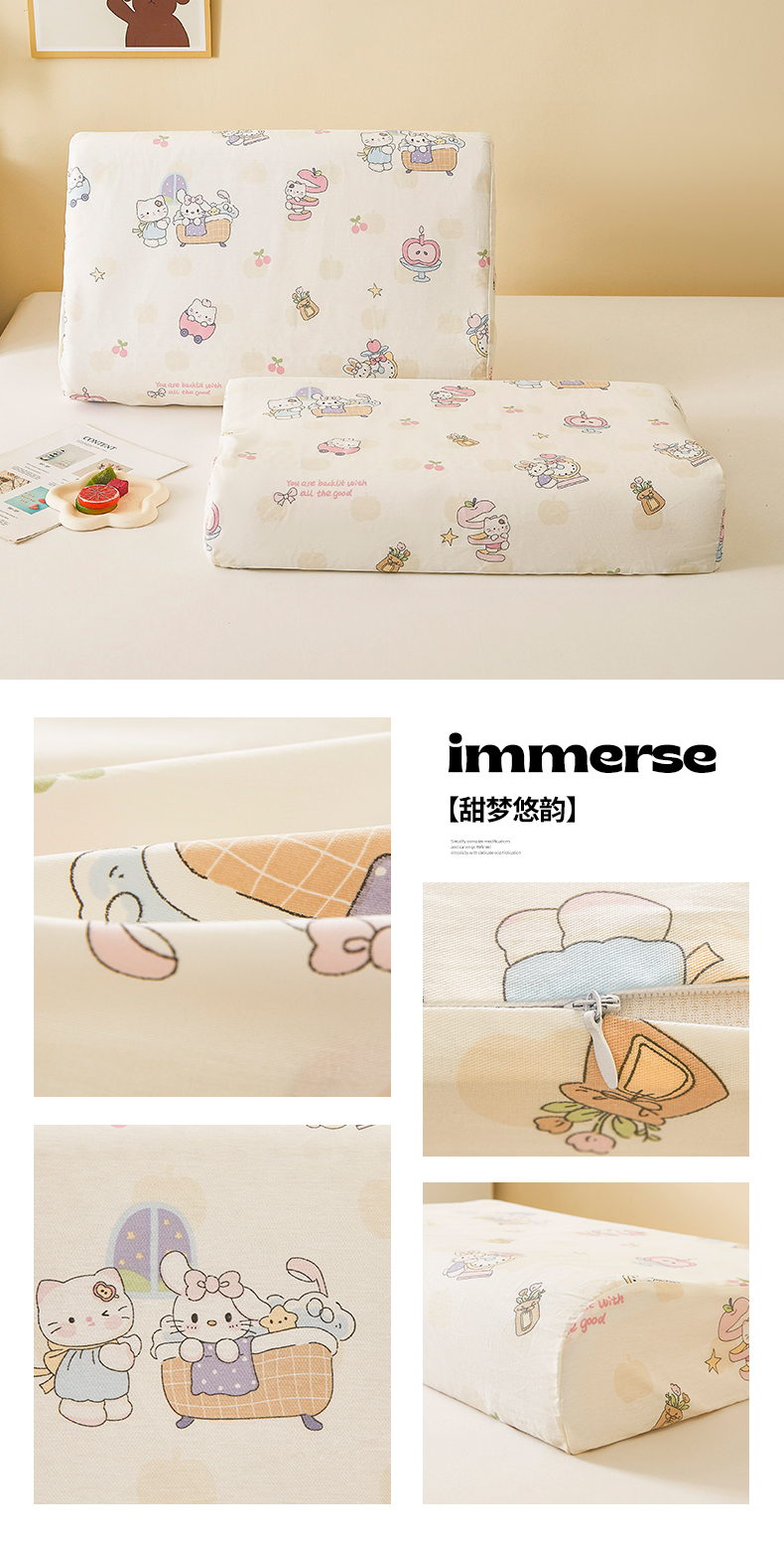 商品名称:翎盈家纺 2025款ins风小清新卡通多规格纯棉乳胶枕专用枕套全棉枕头套 糖果幼儿园
