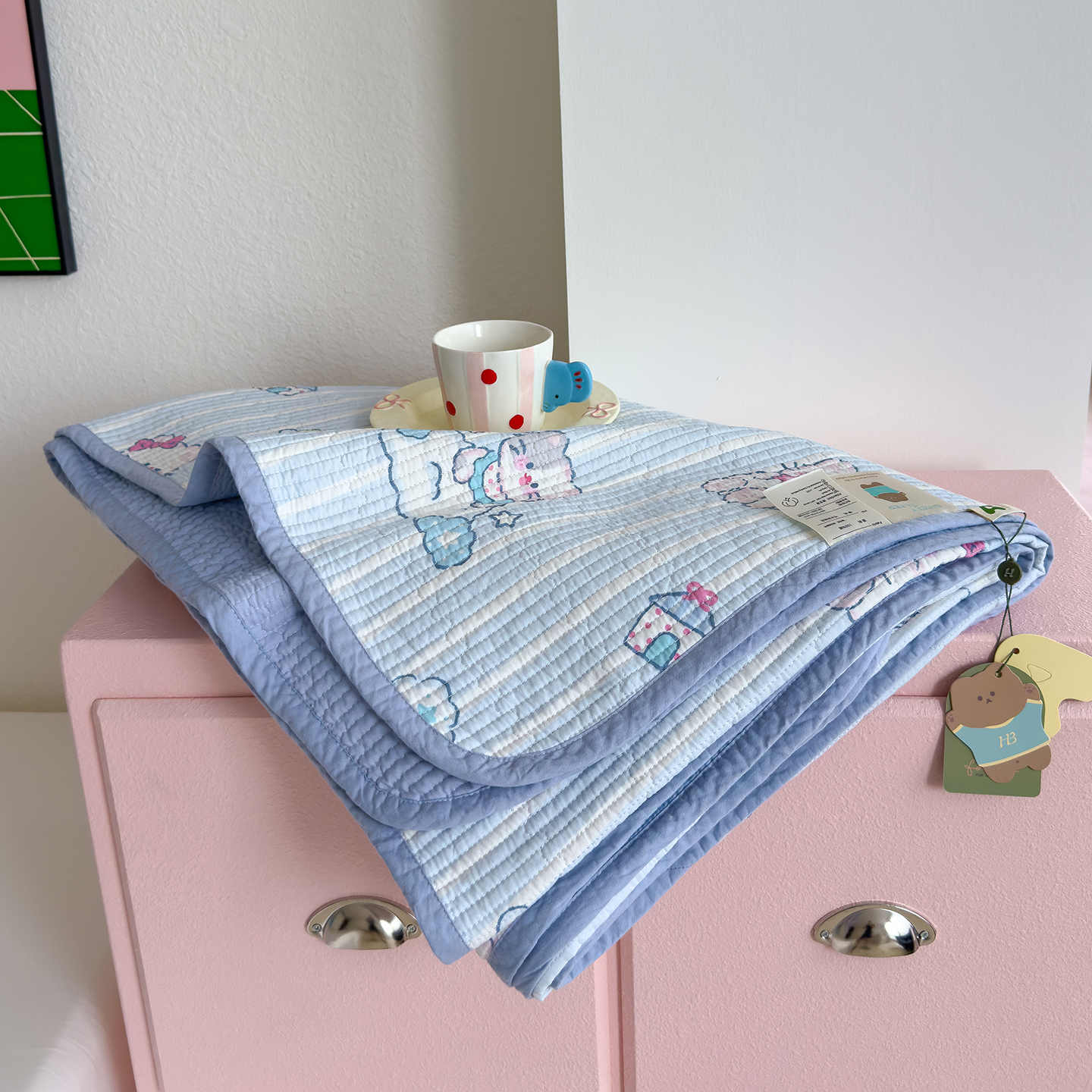 赫梵茜 2025新款高温砂洗全棉床盖单品床盖床盖单件床盖三件套【填充含可水洗棉花】 奶呼兔兔