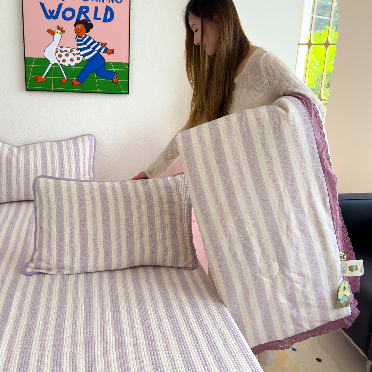 • 91家纺网 家纺一手货源 找家纺 (总)赫梵茜 2025新款高温砂洗全棉床盖单品床盖床盖单件床盖三件套【填充含可水洗棉花】,小猫咪,安哥拉,斑马纹,半岛紫,半夏,格子爱心粉,格子爱心灰,款款诗意粉,款款诗意蓝,腊肠伙伴,奶呼兔兔,奶油波点,塞纳河畔,组合图仅做展示不可下单