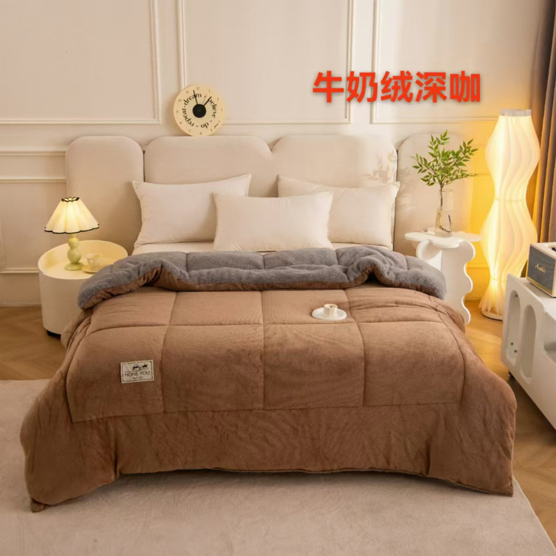 • 91家纺网 家纺一手货源 找家纺 畅销被业 2025新款纯色加厚保暖雪花绒冬被春秋被被子被芯(跨境) 牛奶绒-深咖