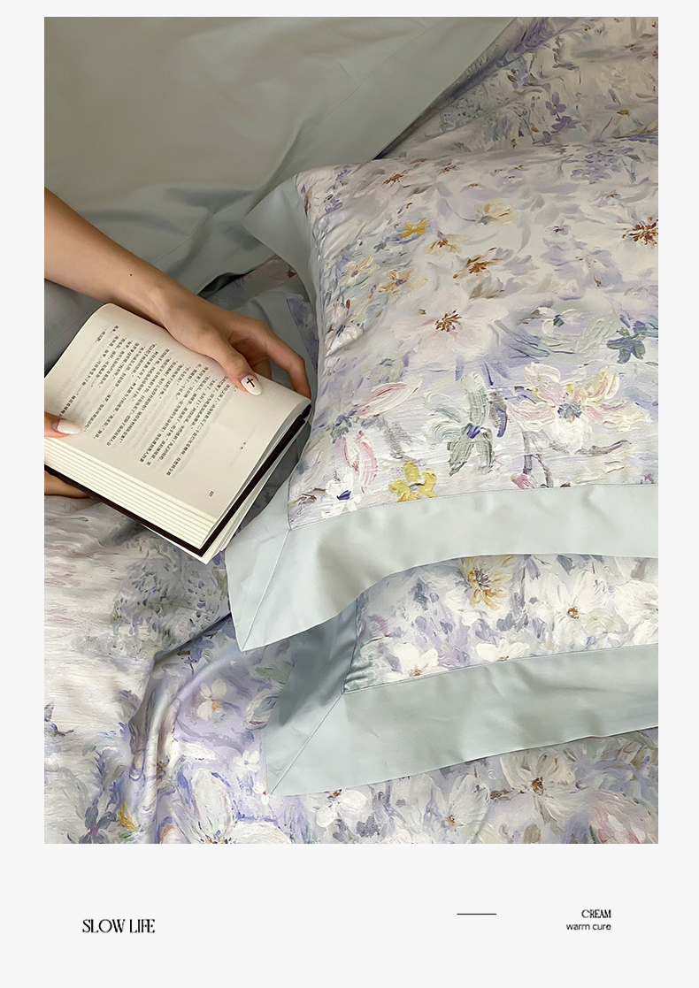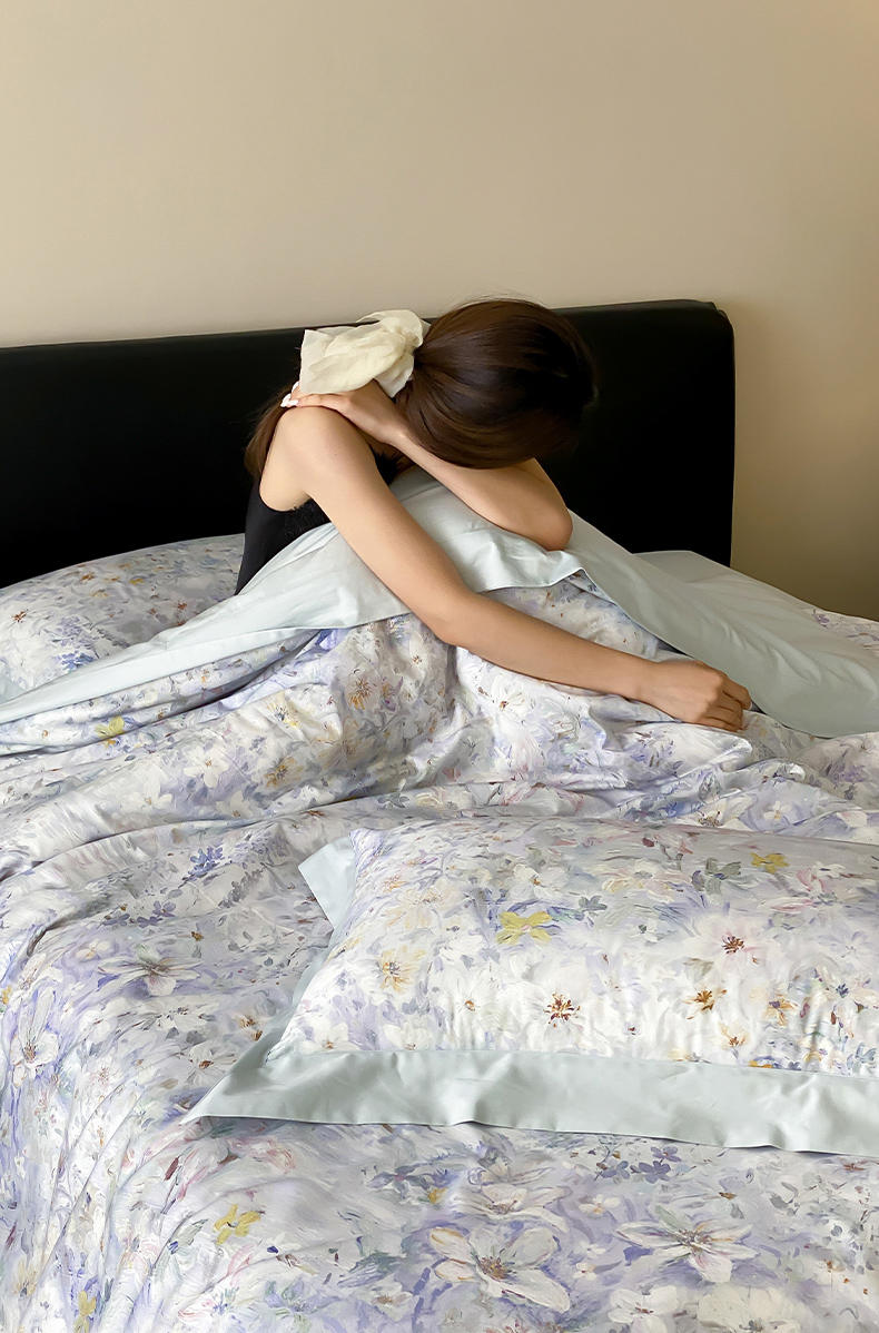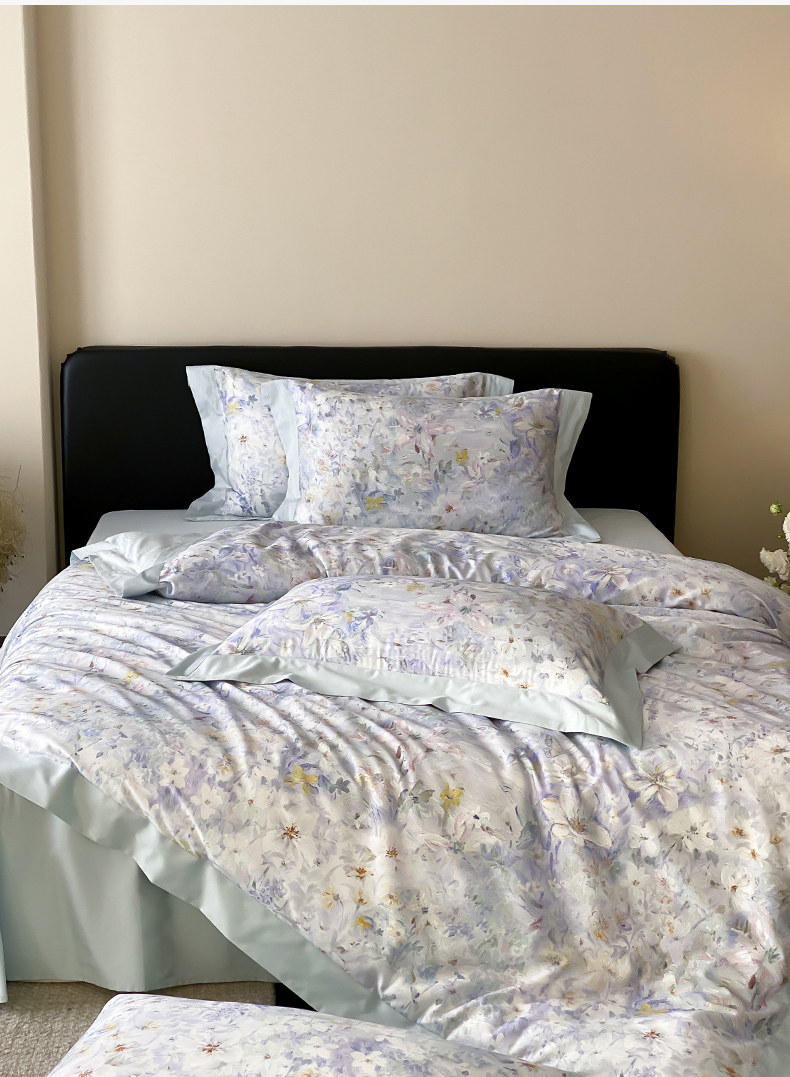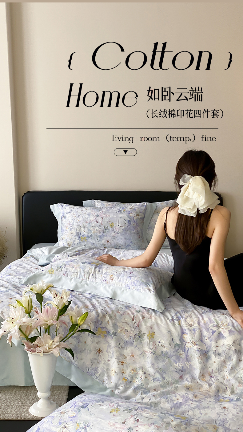 云栖家居 2025全棉纯棉长绒棉纯棉A类50支数码印花系列四件套-春园 花知晓-蓝
