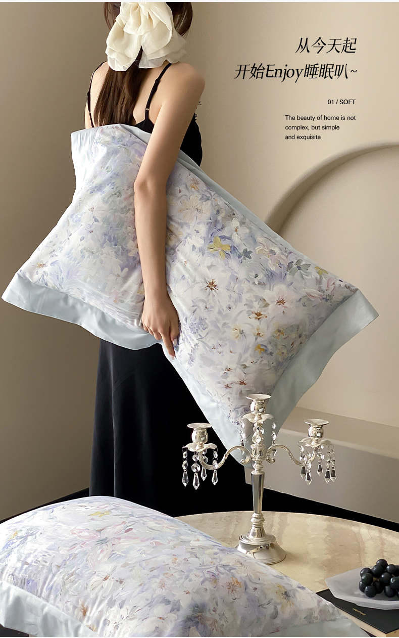 商品名称:云栖家居 2025全棉纯棉长绒棉纯棉A类50支数码印花系列四件套-春园 花知晓-蓝