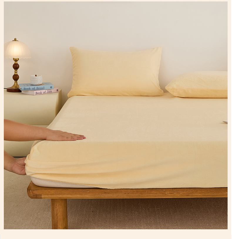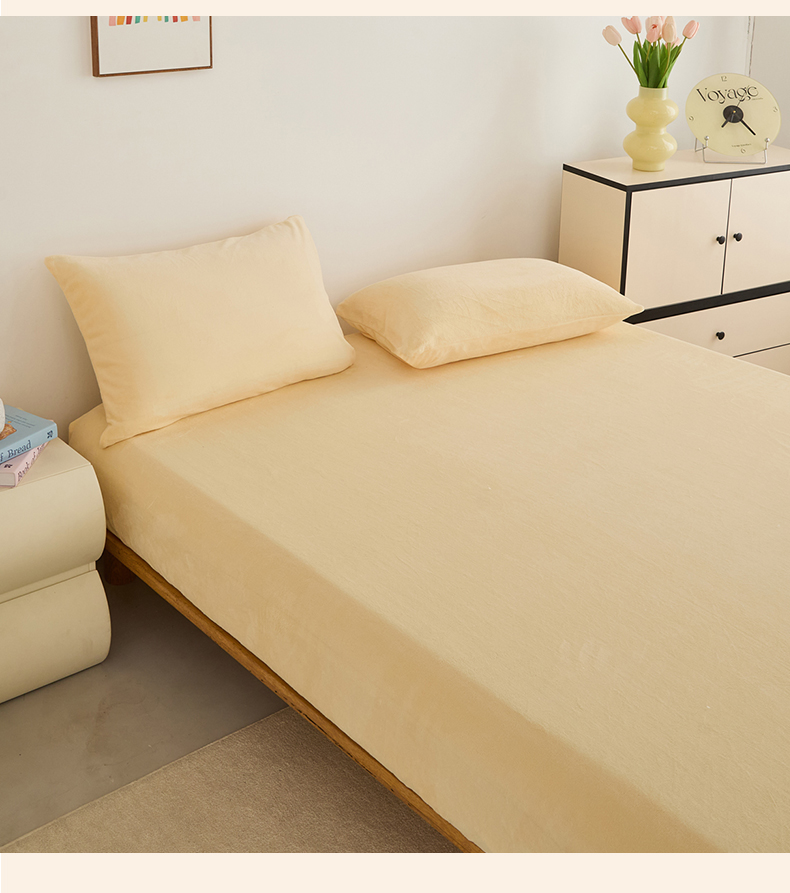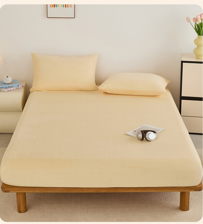 曼町家居 2025新款高克重柔软牛奶绒床笠单床笠床笠单件 芝士黄