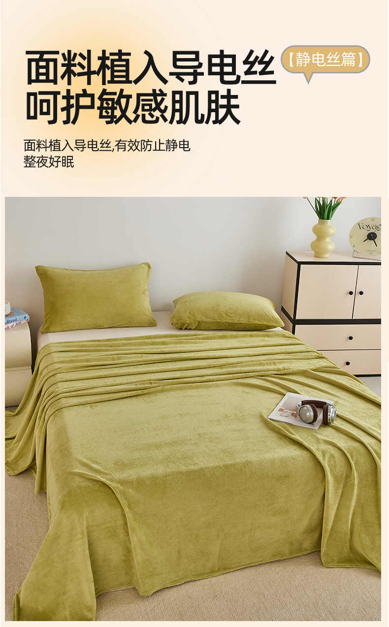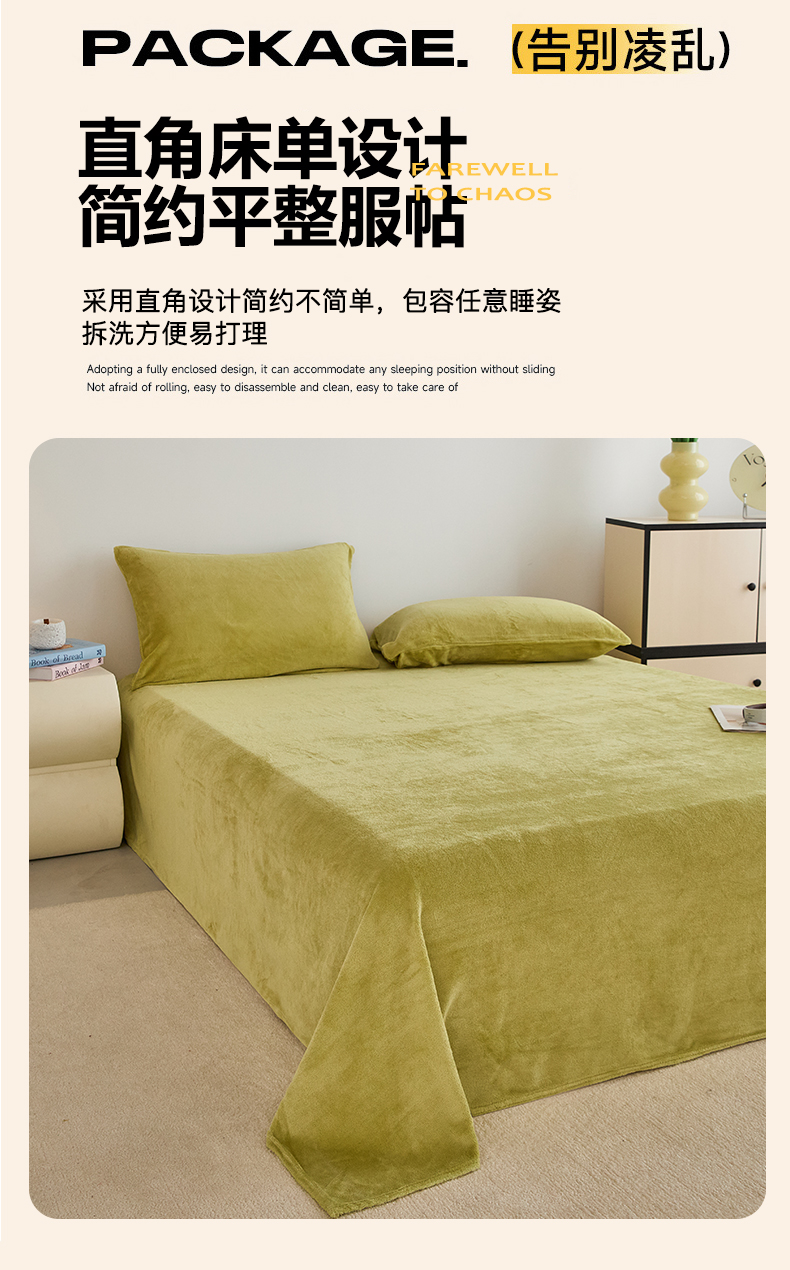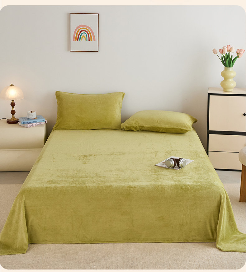 曼町家居 2025新款高克重牛奶绒床单单床单床单单件 抹茶绿