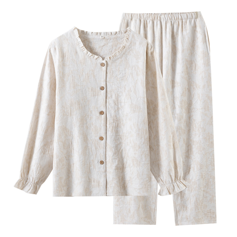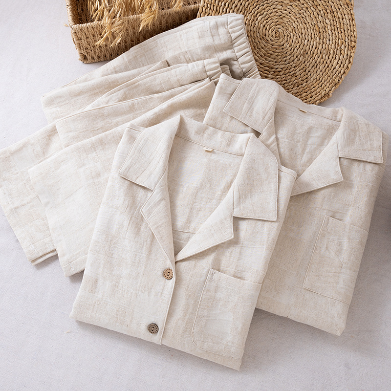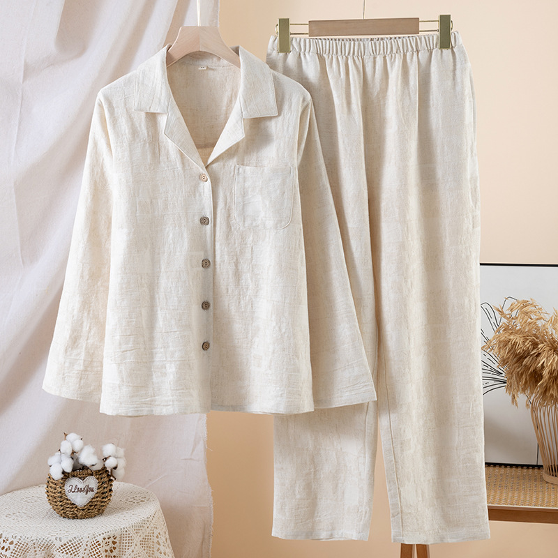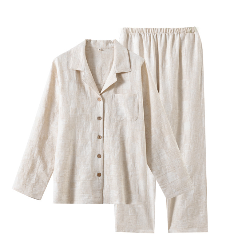 商品名称:(总)【只代发】2025新款无印风简约纯色棉麻睡衣情侣款春秋夏季薄款男女士家居服套装可外穿长袖