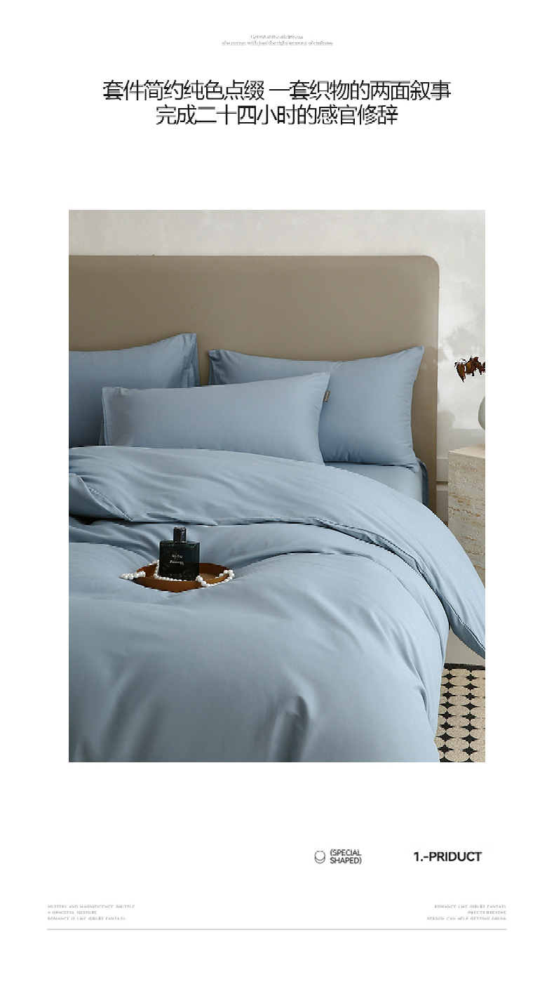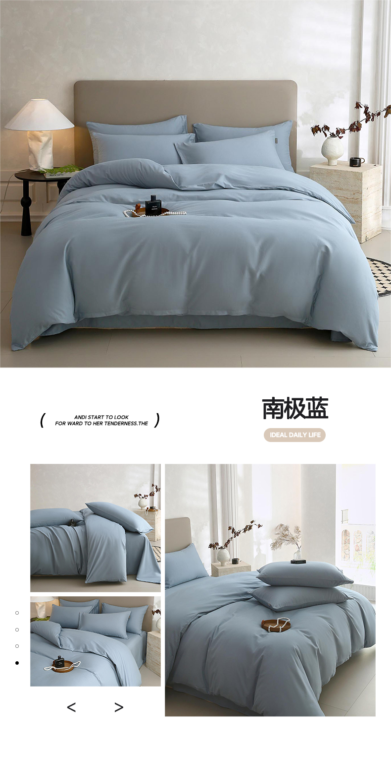 商品名称:宜家坊 2025新款A类60支长绒棉纯色磨毛四件套 南极蓝