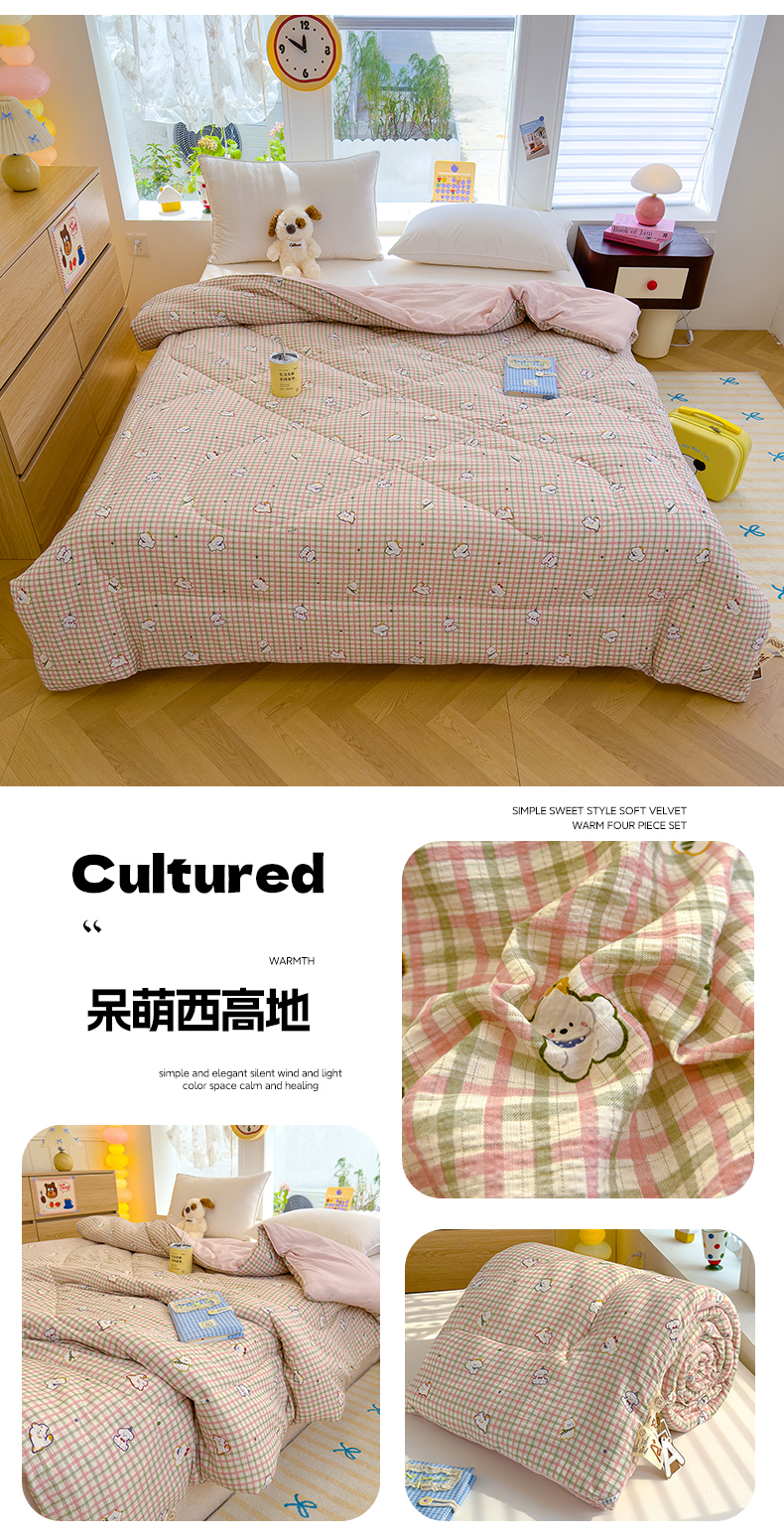 • 91家纺网 家纺一手货源 找家纺 (总)弗苓家纺 2025新款糯叽叽ins风双层纱水洗棉冬被被子被芯,绚颜,汪汪队,蜡笔小新,春晓,垂耳免,樱桃,粉黛,安妮兔,西高地,初恋,海盐-蓝,海盐-米,米奇妙妙,梦蝶,郁金香,组合图仅供参考不可下单