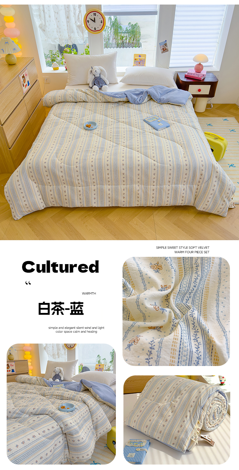 • 91家纺网 家纺一手货源 找家纺 (总)弗苓家纺 2025新款糯叽叽ins风双层纱水洗棉冬被被子被芯,绚颜,汪汪队,蜡笔小新,春晓,垂耳免,樱桃,粉黛,安妮兔,西高地,初恋,海盐-蓝,海盐-米,米奇妙妙,梦蝶,郁金香,组合图仅供参考不可下单