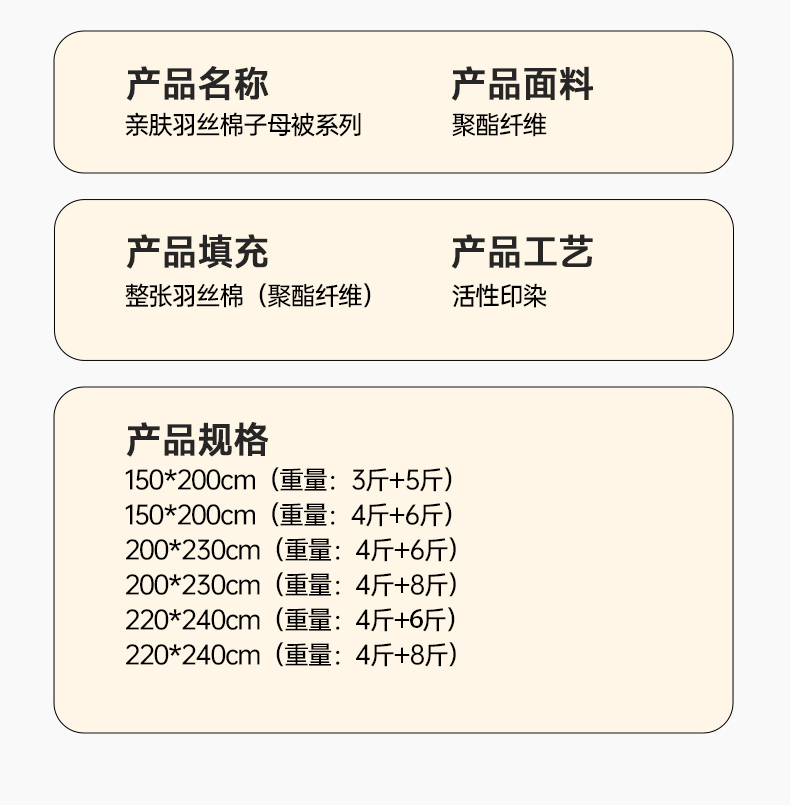 150x200cm 4斤(单条被芯不含拉链) | ¥50.00 |