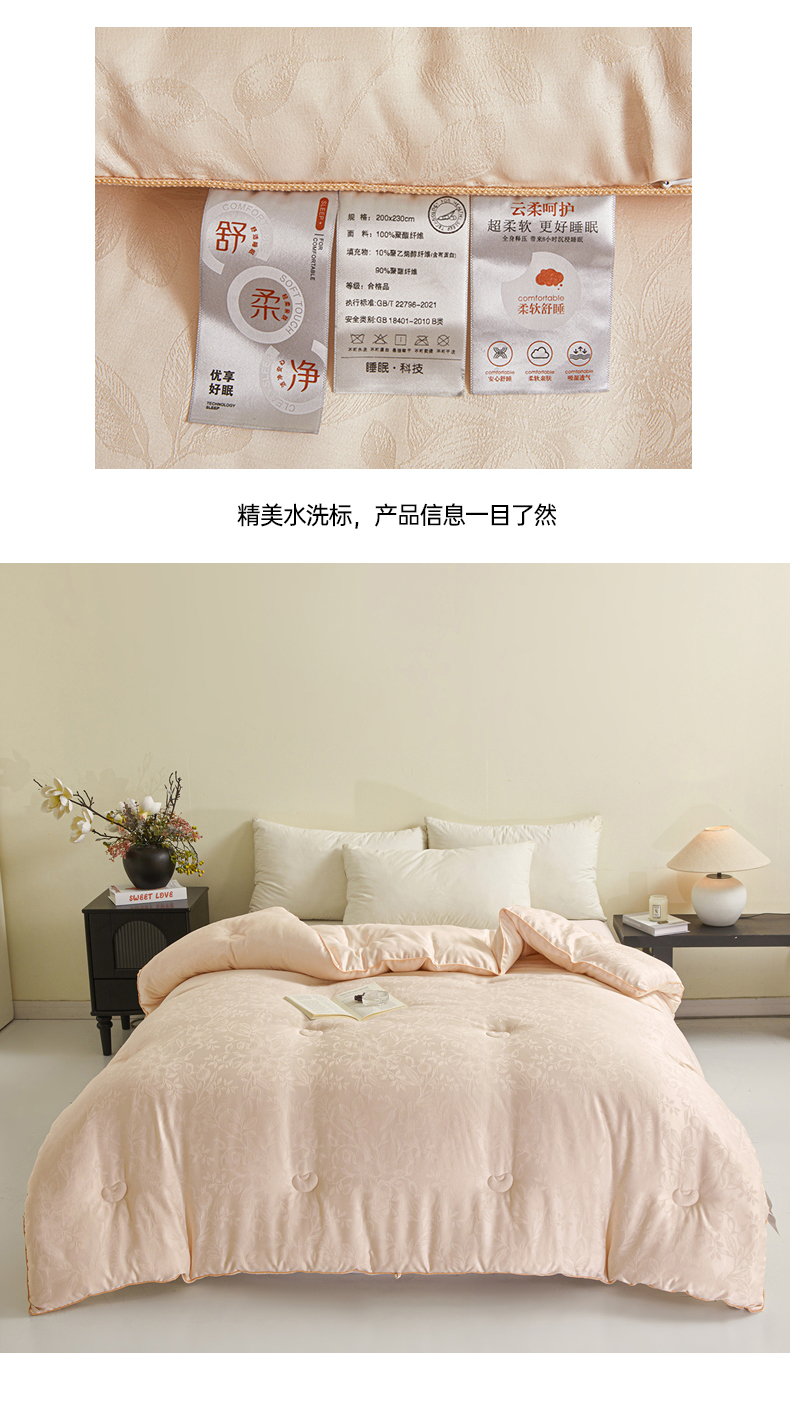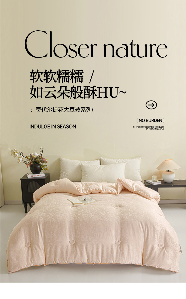 商品名称:寐居家纺 2025新款莫代尔提花被子被芯 叶芝-金