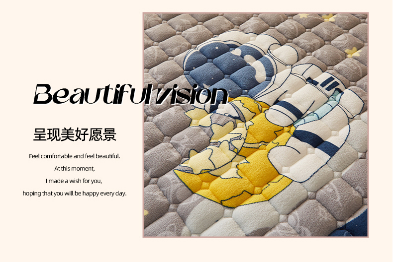 商品名称:奇丝雅 2025新款A类牛奶绒床褥床垫家用学生宿舍上下铺寝室软垫床护垫夹棉褥子-学生床套件 宇航员