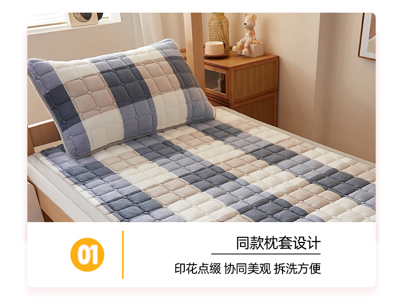 商品名称:奇丝雅 2025新款A类牛奶绒床褥床垫家用学生宿舍上下铺寝室软垫床护垫夹棉褥子-学生床单件 大蓝格