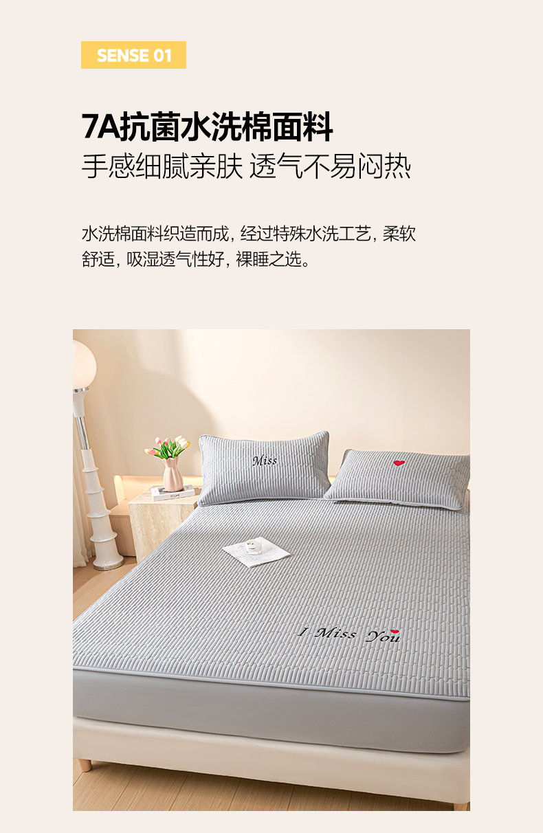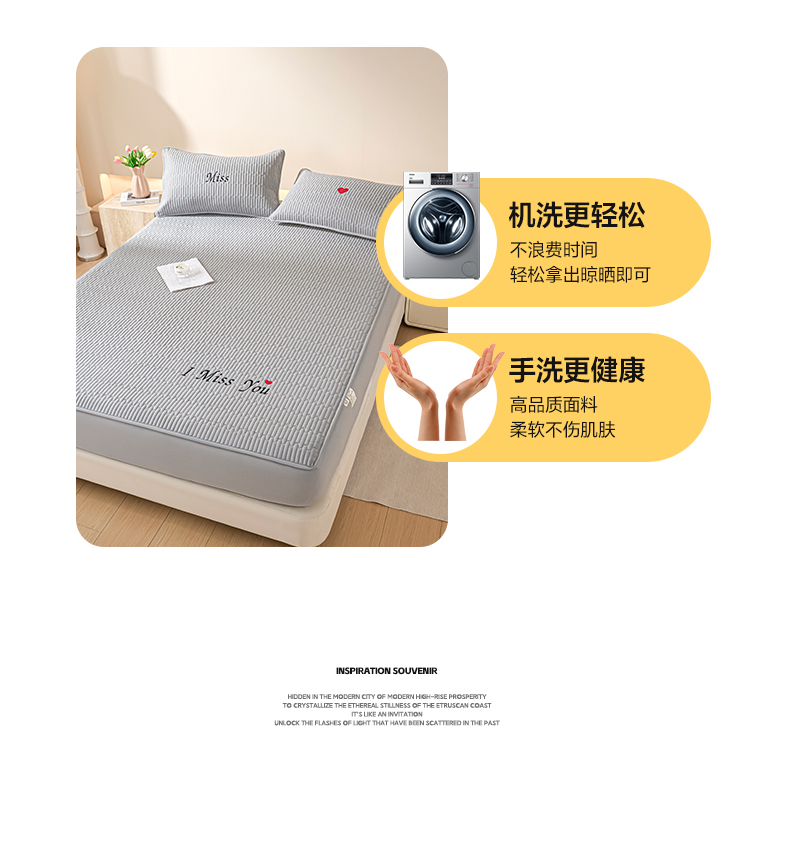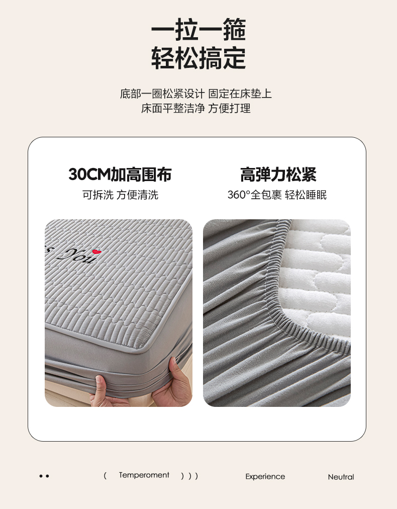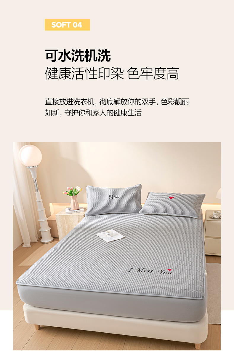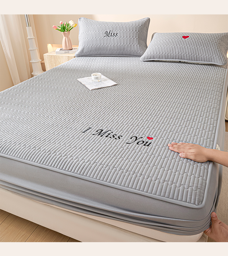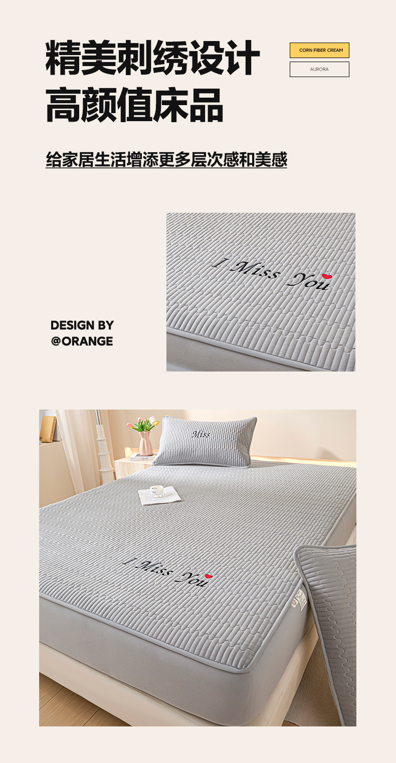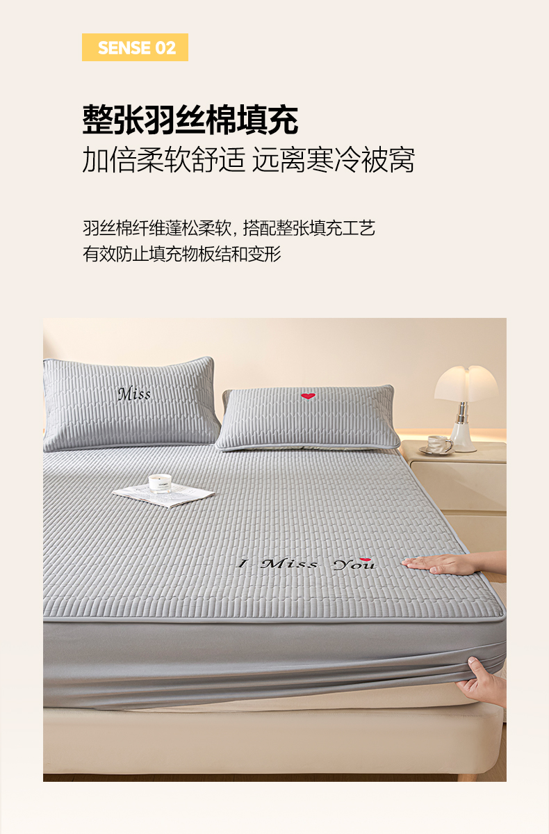 • 91家纺网 家纺一手货源 找家纺 卡伦家纺 2025新款A类刺绣夹棉床笠情书系列 雾灰情书