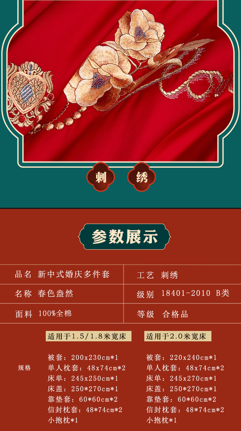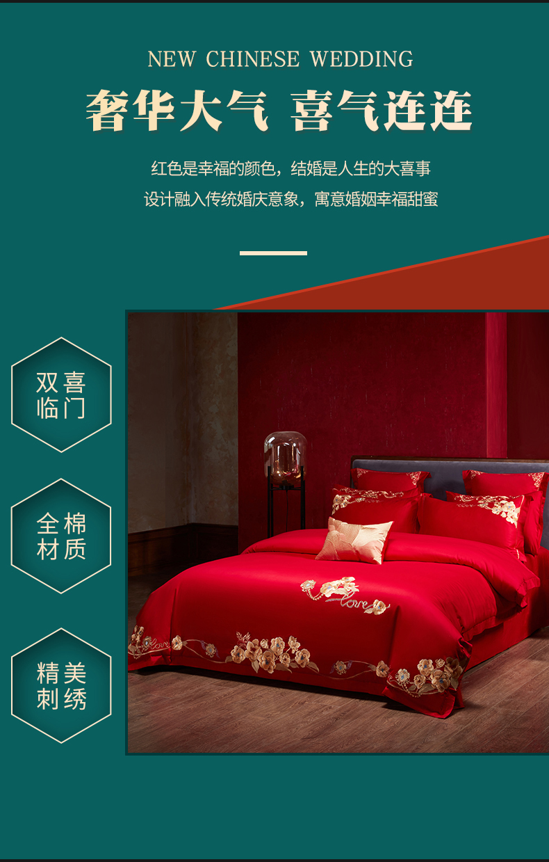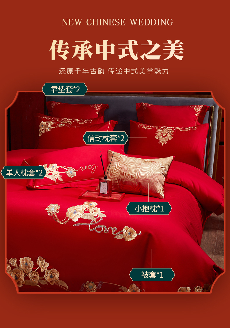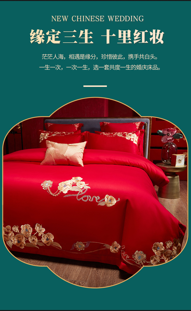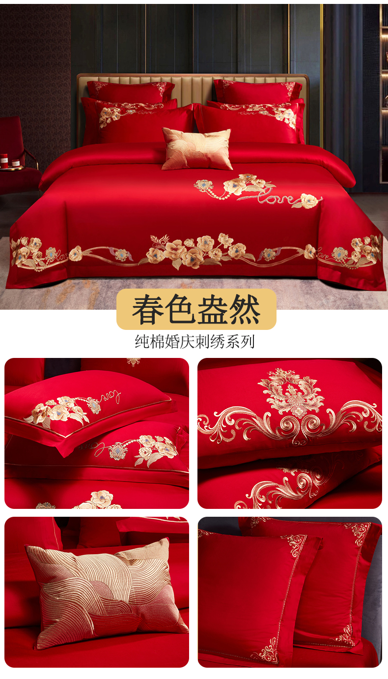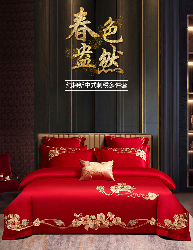 当前位置: 91家纺网 > 商品网购 > 床品套件 > 四件套 > 婚庆四件套 > 红番天婚庆 (控价)2025新款全棉新中式刺绣款婚庆四件套多件套 春色盎然