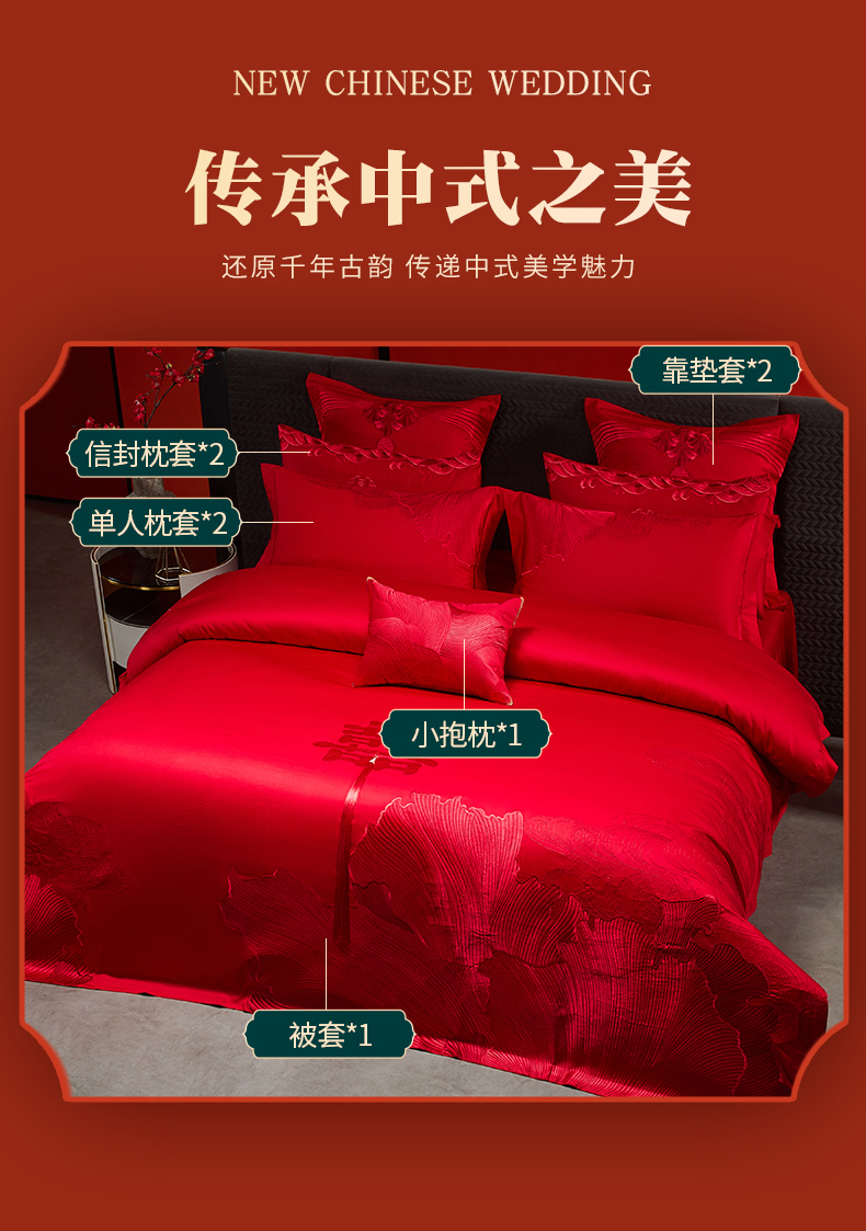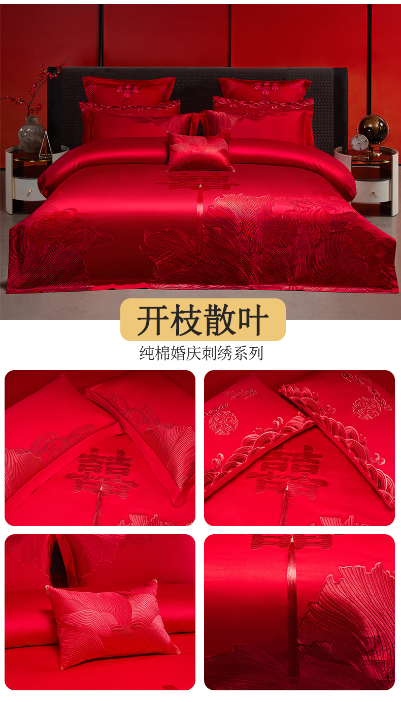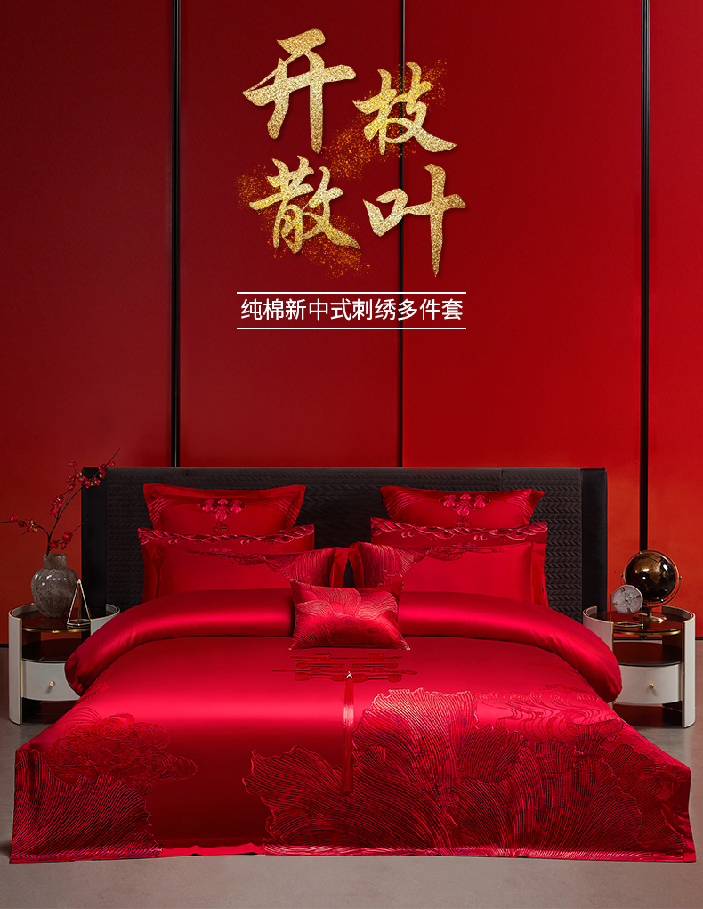 当前位置: 91家纺网 > 商品网购 > 床品套件 > 四件套 > 婚庆四件套 > 红番天婚庆 (控价)2025新款全棉新中式刺绣款婚庆四件套多件套 开枝散叶